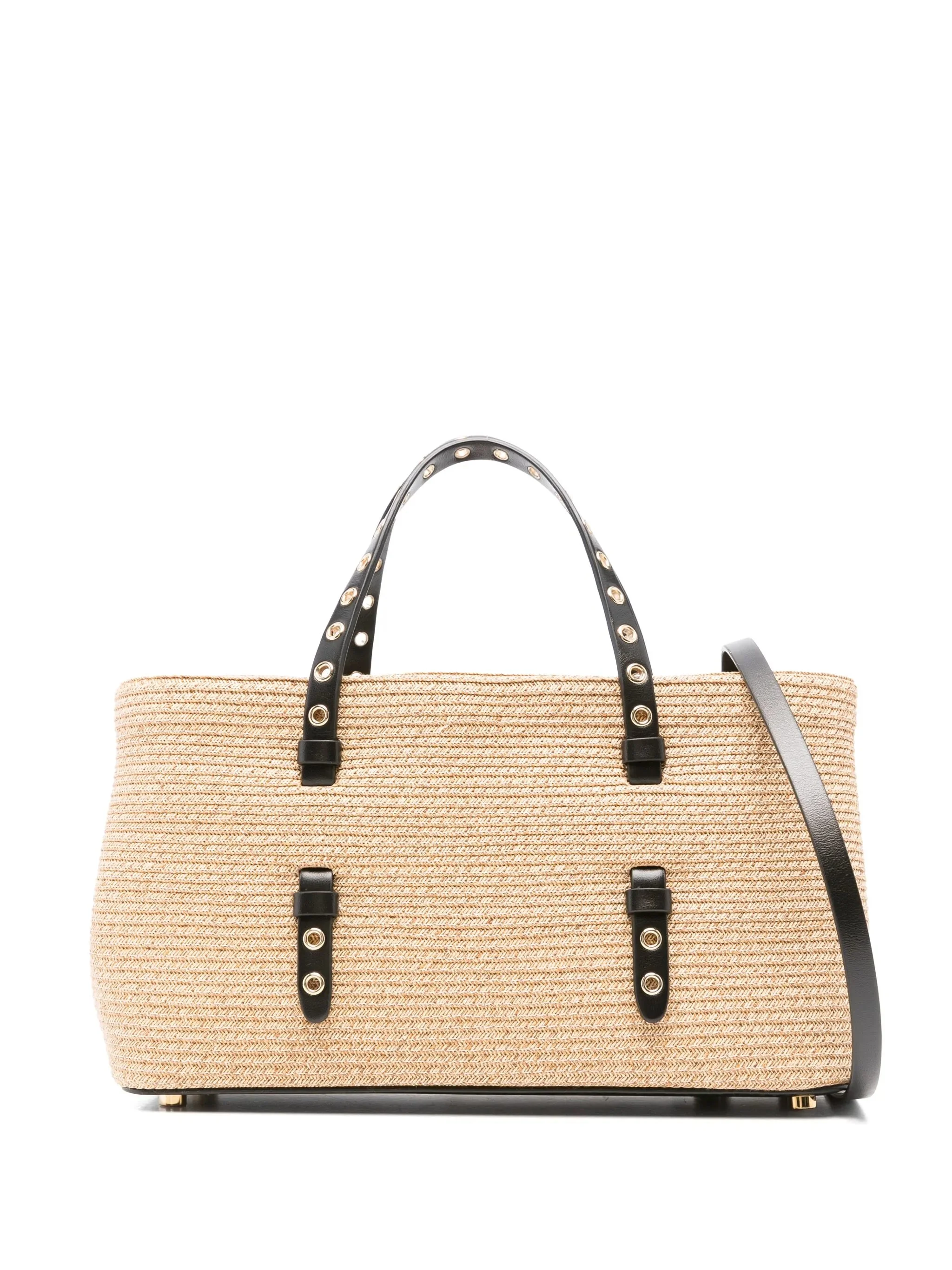 Mena E/W medium eyelet-embellished leather-trimmed raffia tote Beige
