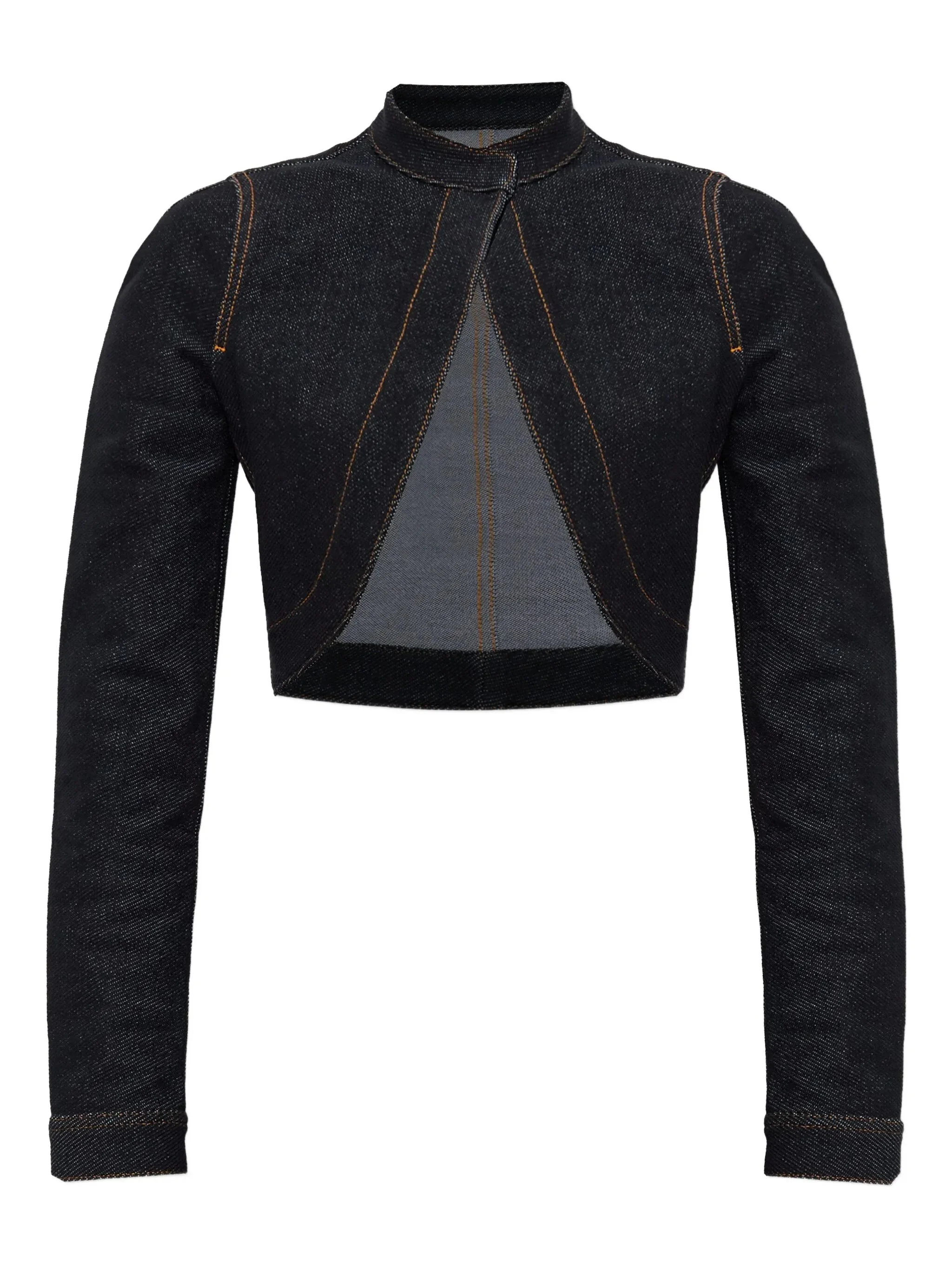 - black - stand collar - long sleeves - button fastening - topstitching - cropped Materials & Product Care Cotton 100%