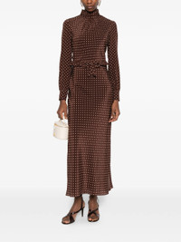 - brown - polka dot print - high neck - long sleeves - midi length - belt Materials & Product Care Lining: viscose 100% Outer: Silk 100%