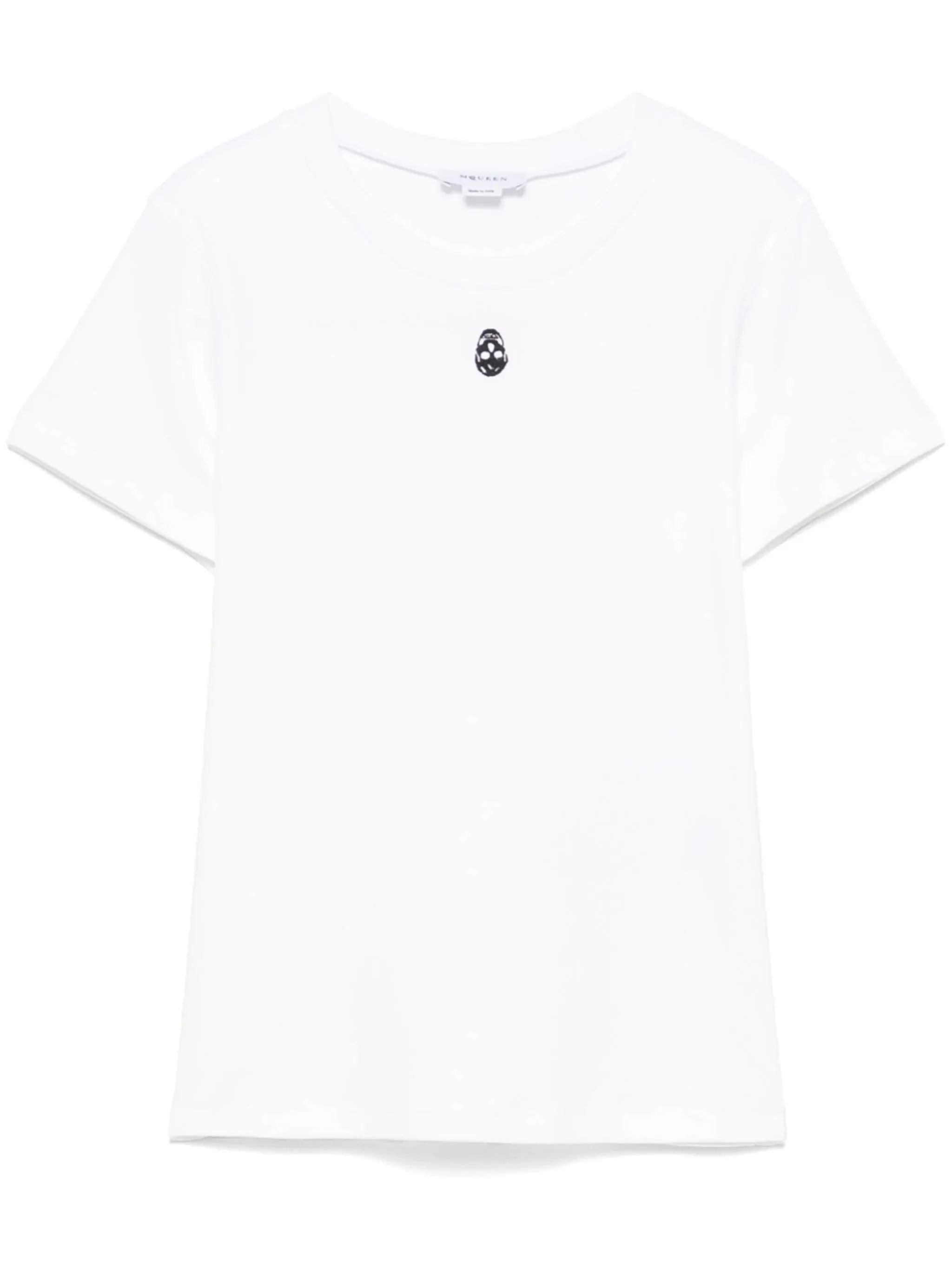- white - skull embroidery to the front - crew neck - short sleeves Materials & Product Care Cotton 100%, Polyester 20%, viscose 80% Size & Fit - Designed for a slim fit that sits just away from the body offering a close yet comfortable fit - Made from a midweight non-stretch fabric, this piece offers minimal elasticity when worn - The model is 1.80 m wearing size 40.