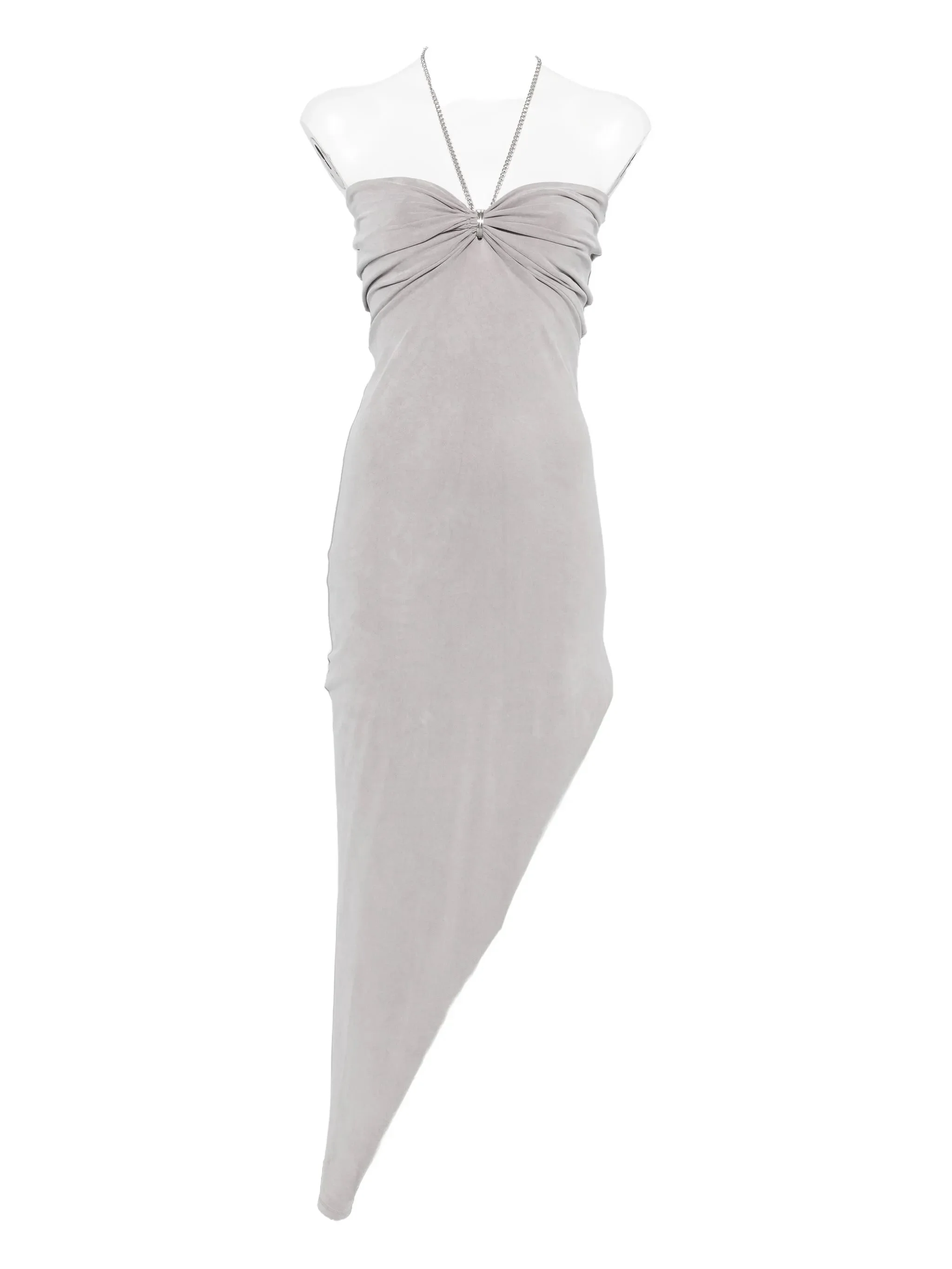 - grey - halterneck - asymmetrical hem - gathered bodice - side slit Materials & Product Care Elastane 11%, Lyocell 89% Size & Fit - The model is 1.77 m wearing size S.