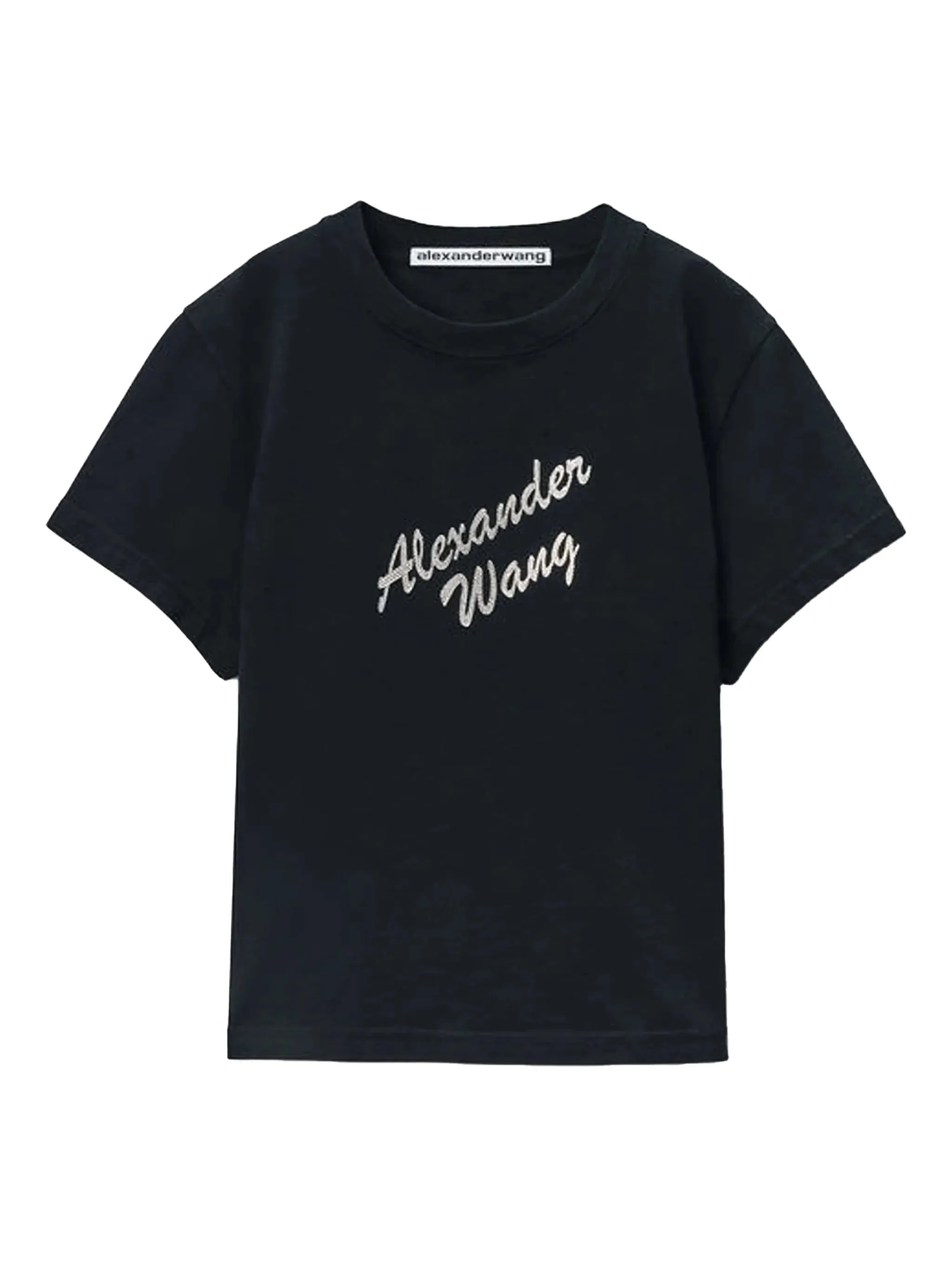 - black - short sleeves - crew neck - crystal embellishment - signature lettering Materials & Product Care Cotton 100%