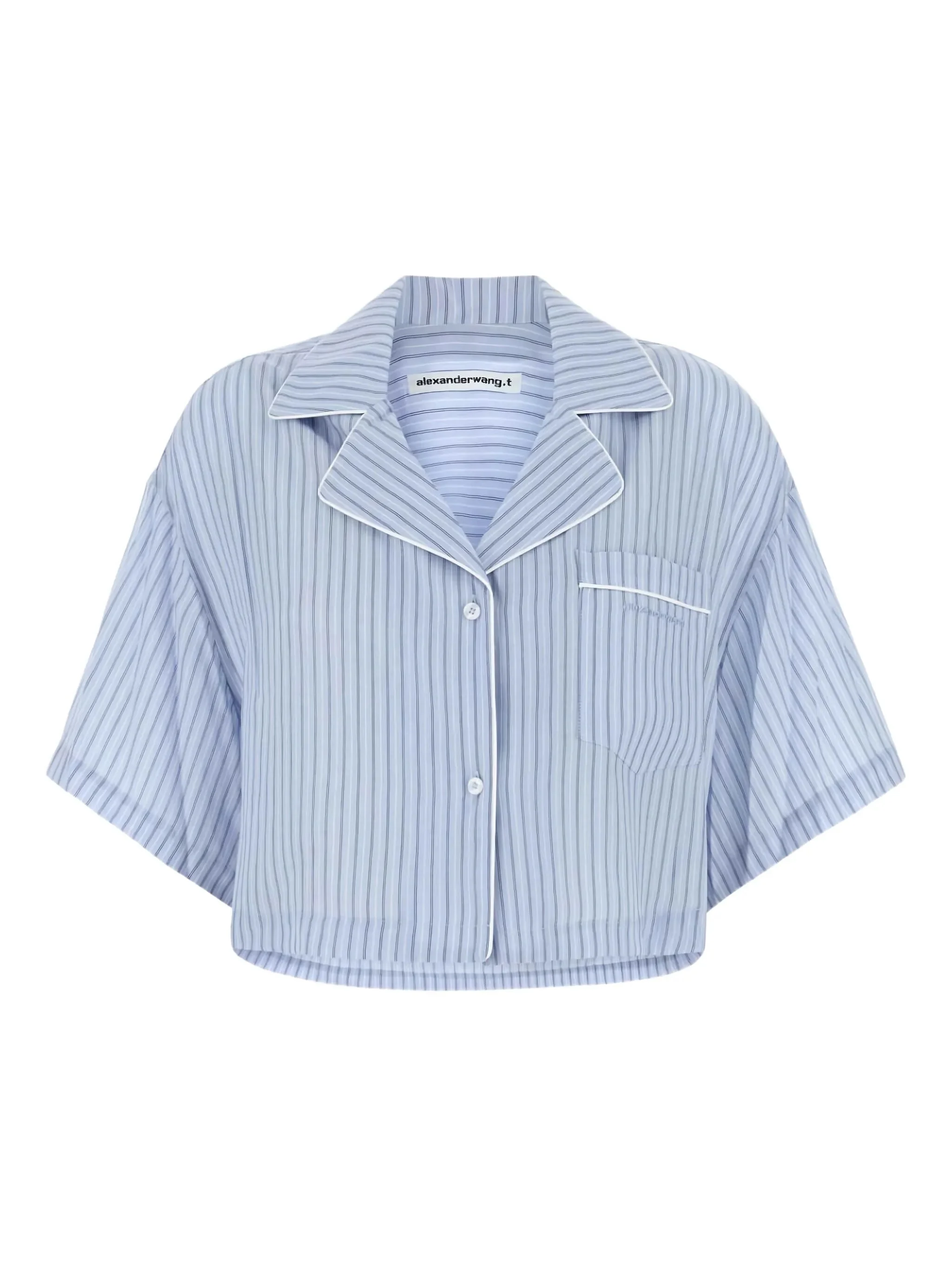 - light blue - vertical stripes - notched lapels - chest pocket - button fastening - cropped design Materials & Product Care Lyocell 100%