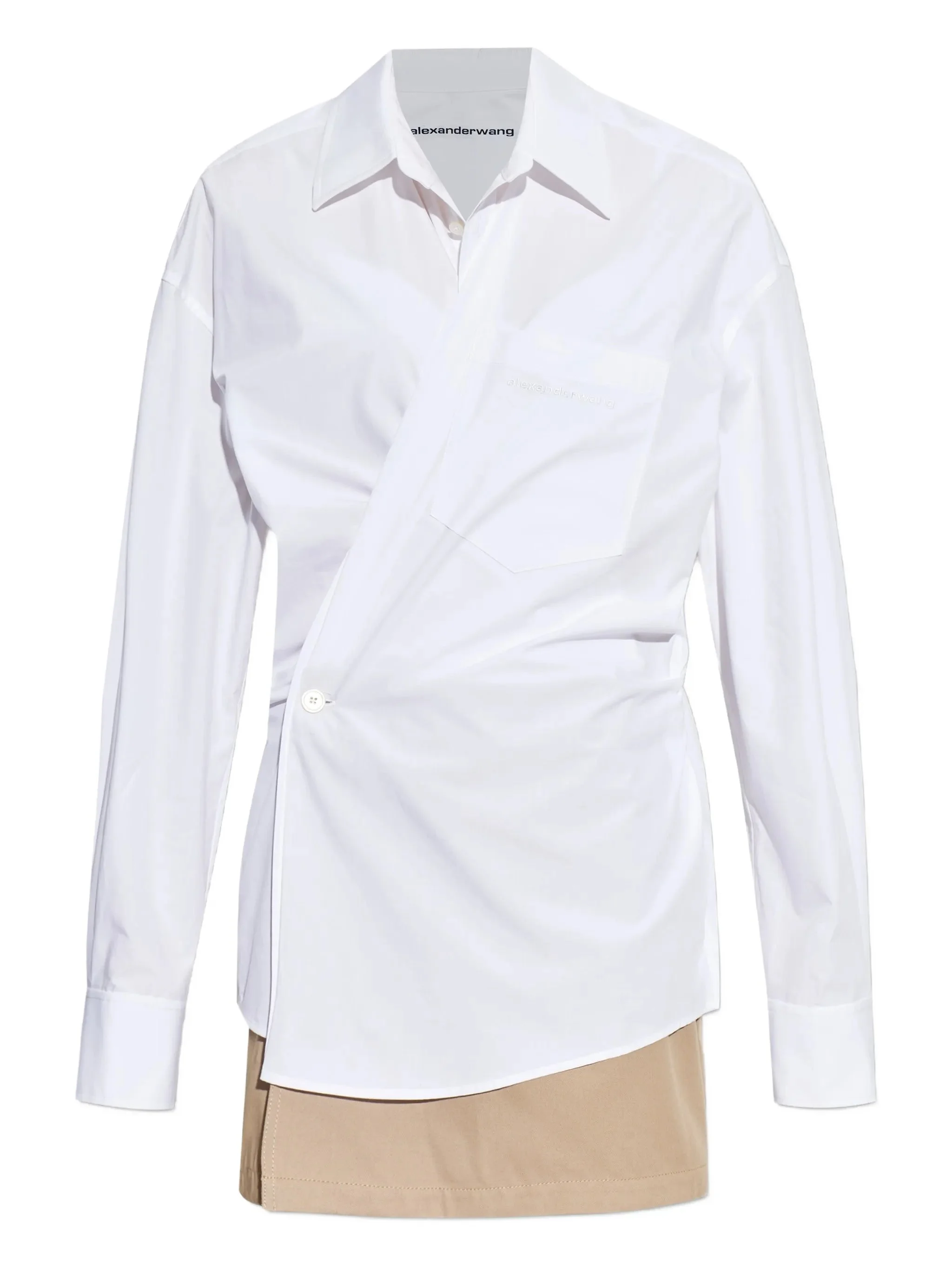 - white - point collar - chest pocket - button fastening - long sleeves - asymmetric hem Materials & Product Care Cotton 100%