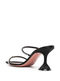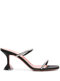 - black - satin finish - crystal embellishment - square open toe - elasticated strap - branded leather footbed - 70mm mid sculpted heel - leather and rubber outsole - slip-on style Materials & Product Care Lining: Calf Leather 100%, Fabric 100% Outer: Fabric 100%, Rhinestone 100% Sole: Calf Leather 100%, Rubber 100%