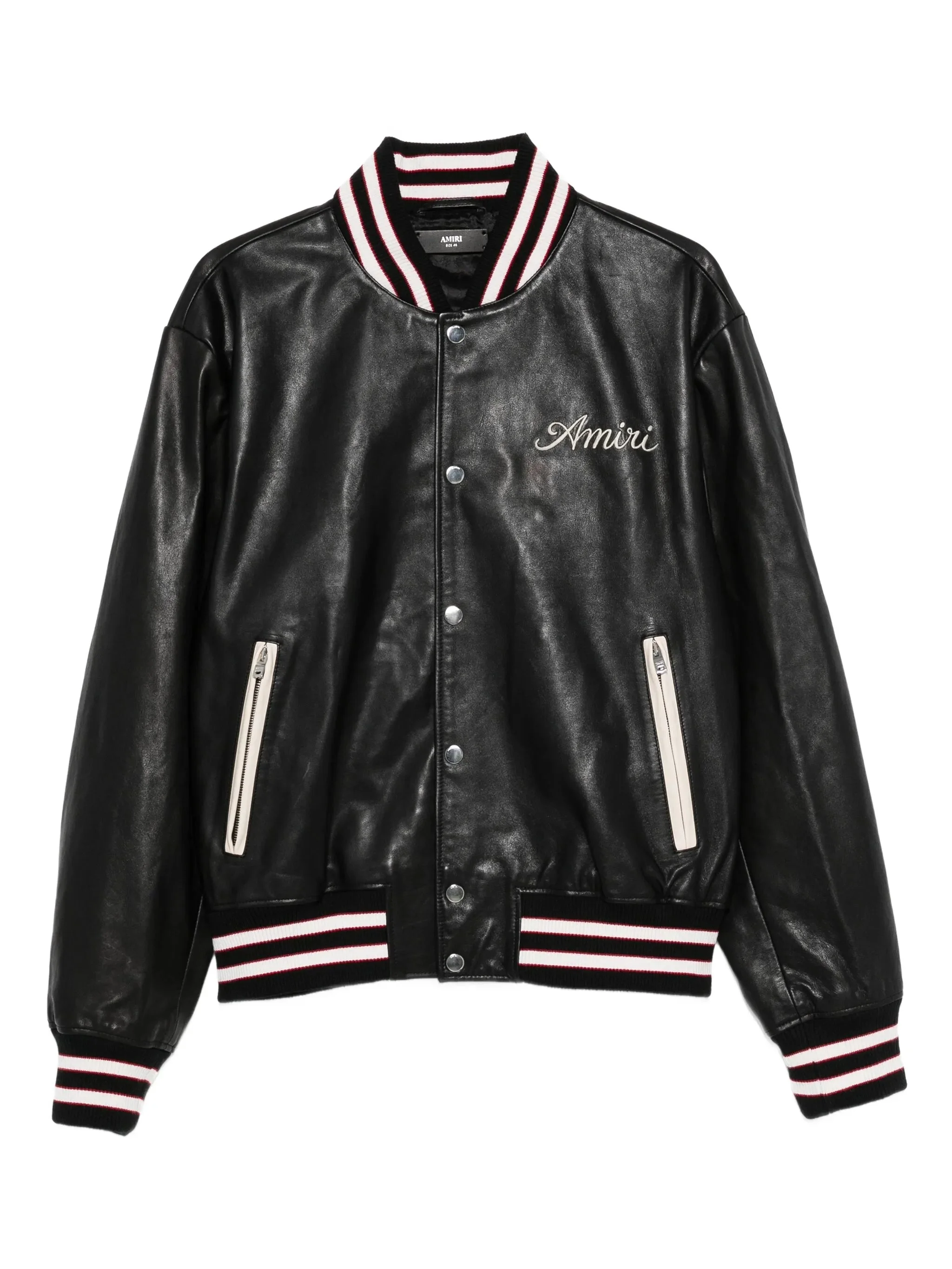 - black - leather - ribbed trims - embroidered logo - snap button fastening - side welt pockets Materials & Product Care Leather 100% Size & Fit - The model is 1.85 m wearing size 48.