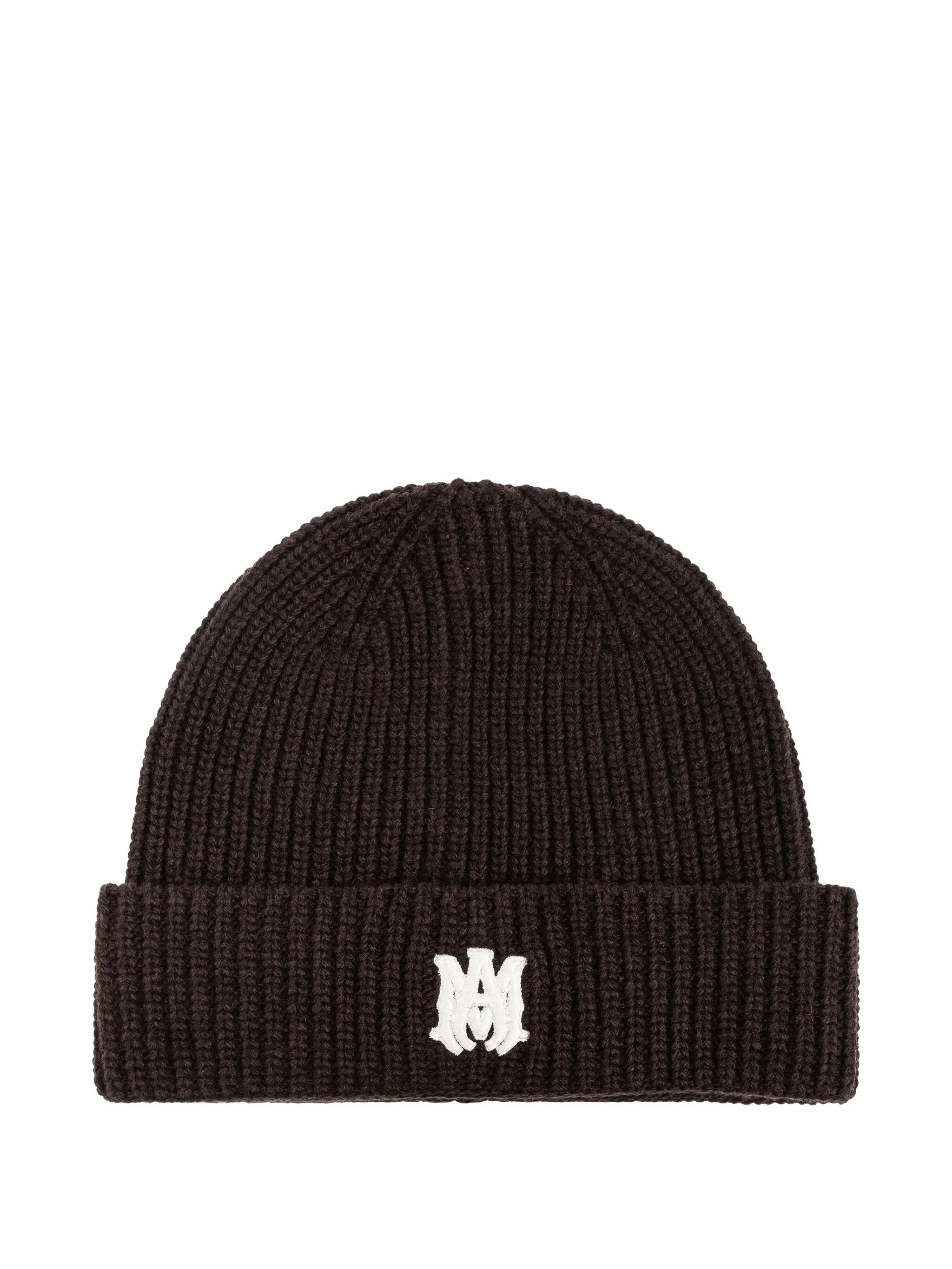 - brown - ribbed knit - embroidered logo - turn-up brim - wool Materials & Product Care Cashmere 100%