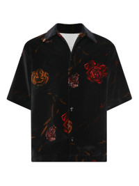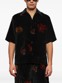 - black - velvet texture - rose print - short sleeves - camp collar - button fastening Materials & Product Care Fabric 100%