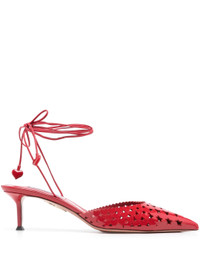 - rose red - self-tie fastening - low heel - branded footbed - This piece comes complete with a protective dust bag. Materials & Product Care Leather 100%