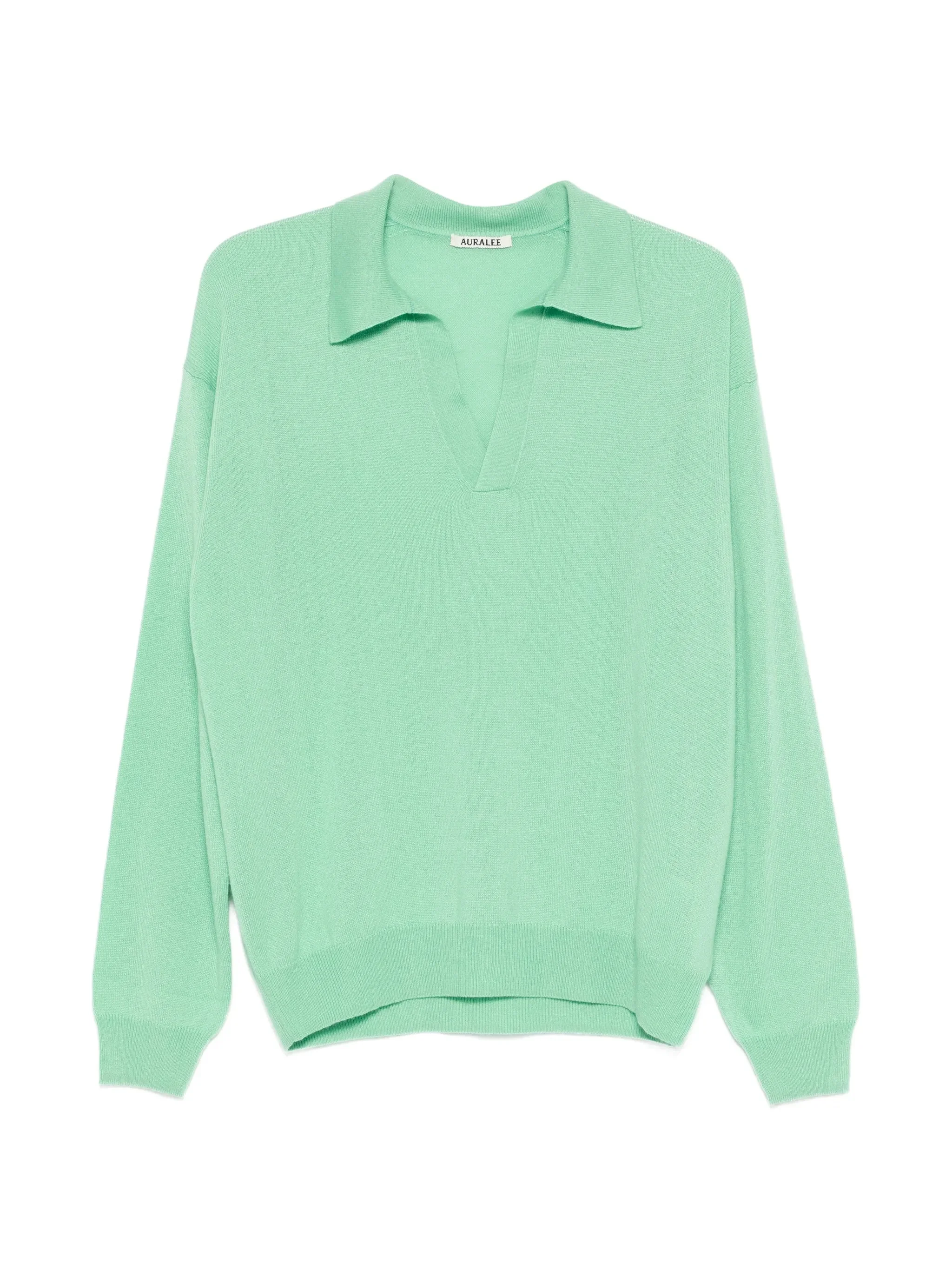 - mint green - polo collar - long sleeves Materials & Product Care Cashmere 50%, Silk 50%