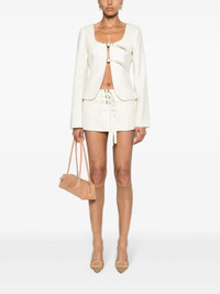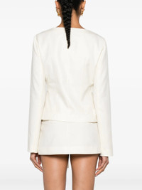 - ivory white - wool blend - gabardine weave - seam detailing - scoop neck - front buckle fastening - long sleeves - straight hem - satin lining Materials & Product Care Lining: Polyester 100% Outer: Polyester 50%, Wool 50% Size & Fit - Designed for a slim fit that sits just away from the body offering a close yet comfortable fit - Made from a midweight non-stretch fabric - The belt offers adjustability for fitted preferences - This piece fits true to size – take your usual size - The model is 1.78 m wearing size S.