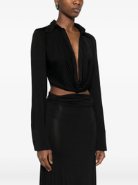 - black - draped detail - collared - long sleeves - cuffed sleeves Materials & Product Care Spandex/Elastane 10%, viscose 90%