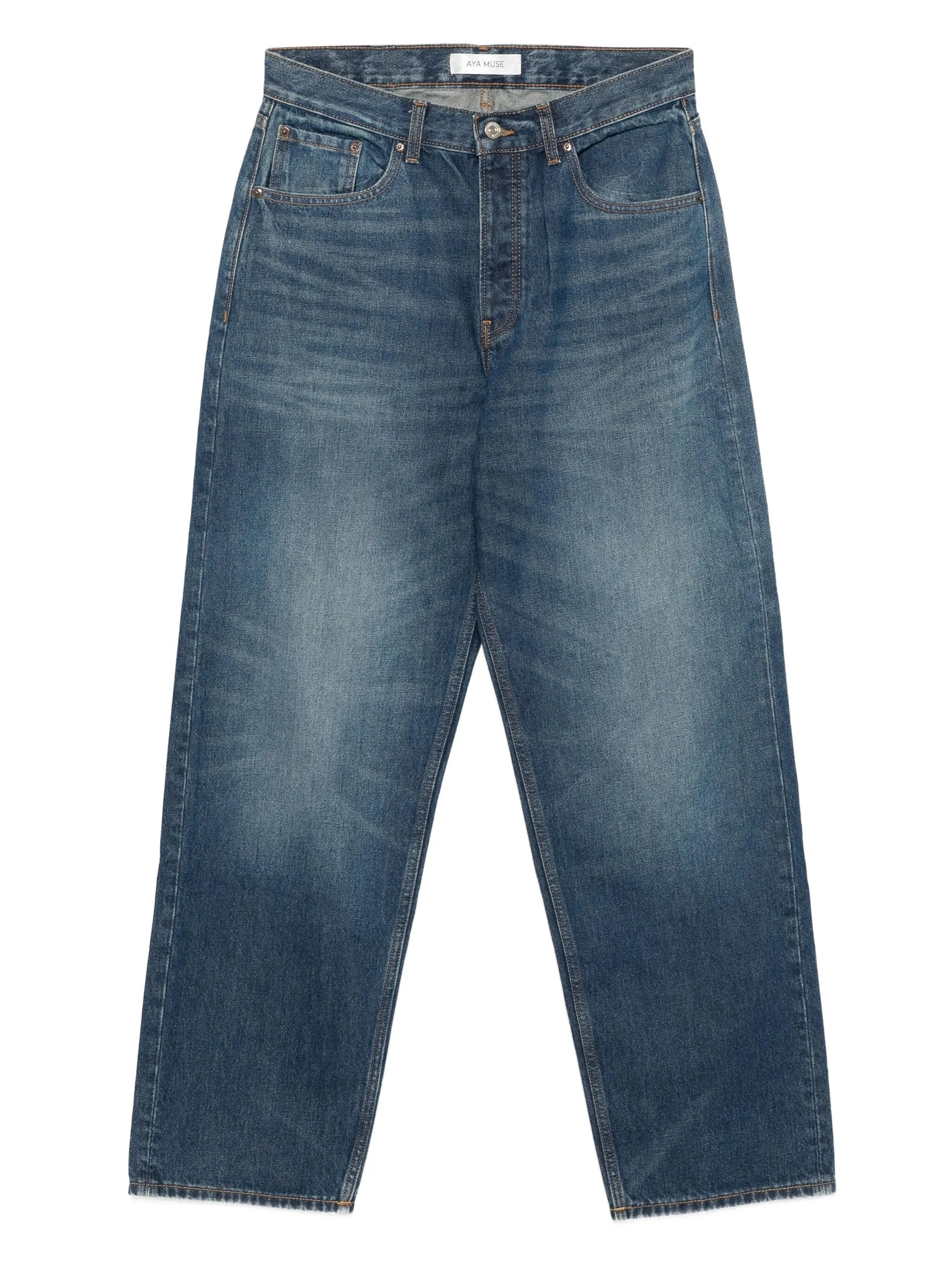 - blue - cotton - button and fly fastening - five-pocket design - wide leg - mid-rise Materials & Product Care Cotton 100% Size & Fit - Designed for a straight-leg fit, these jeans allow for a close fit at the waist and an unrestricted and comfortable fit over the leg - Sturdy and hard-wearing, this denim piece offers no stretch - The model is 1.80 m wearing size M.
