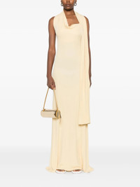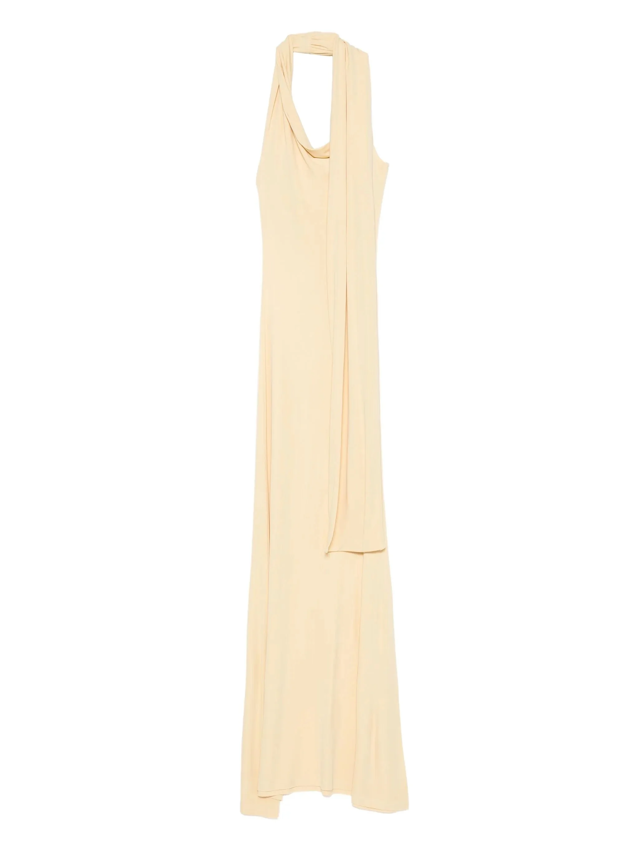 - butter yellow - halterneck - draped detailing - sleeveless - long length - straight hemline Materials & Product Care Elastane 3%, viscose 97% Size & Fit - The model is 1.80 m wearing size S.