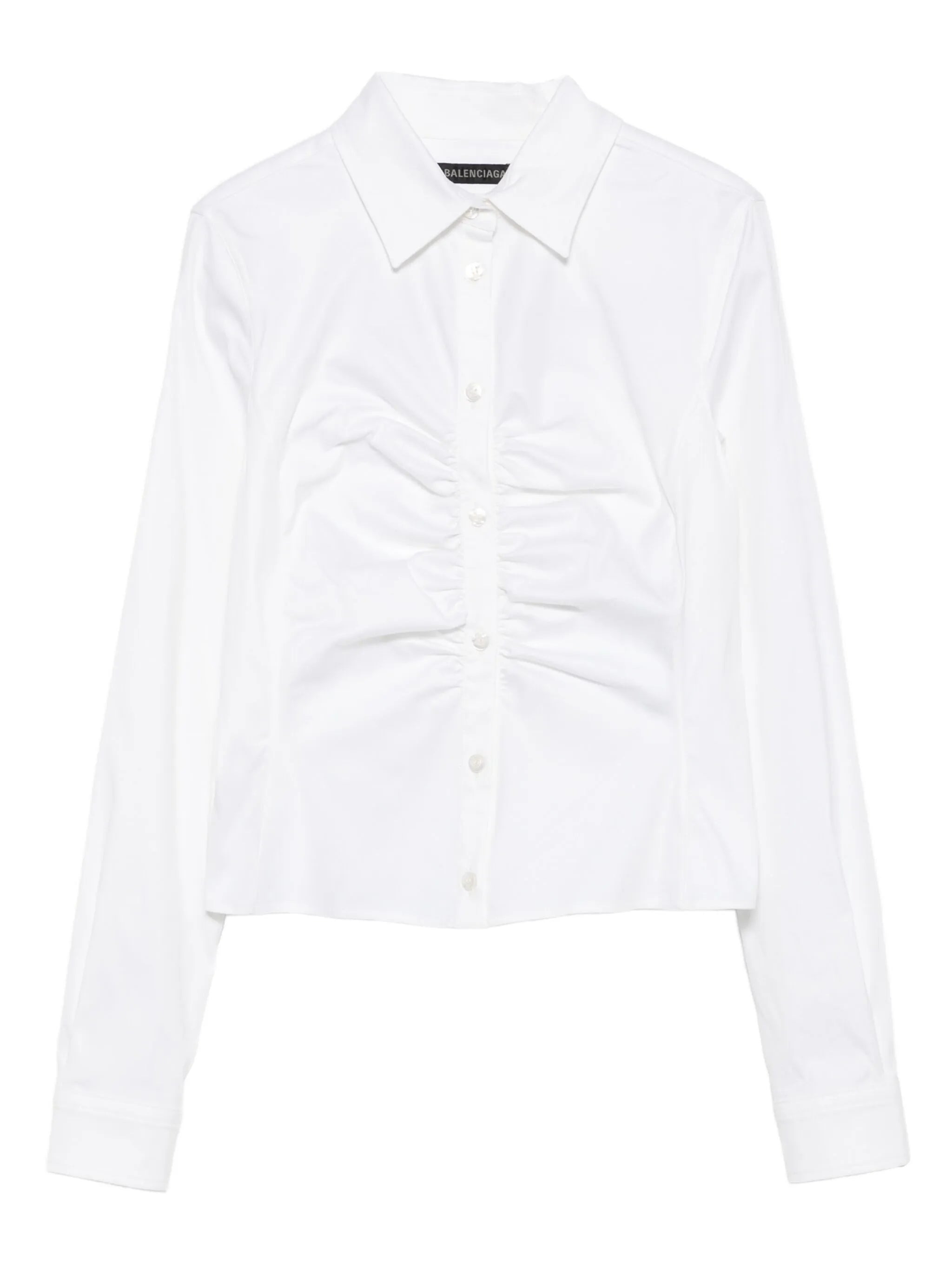 - white - ruched detailing - long sleeves - button fastening - straight hem Materials & Product Care Fabric 100%