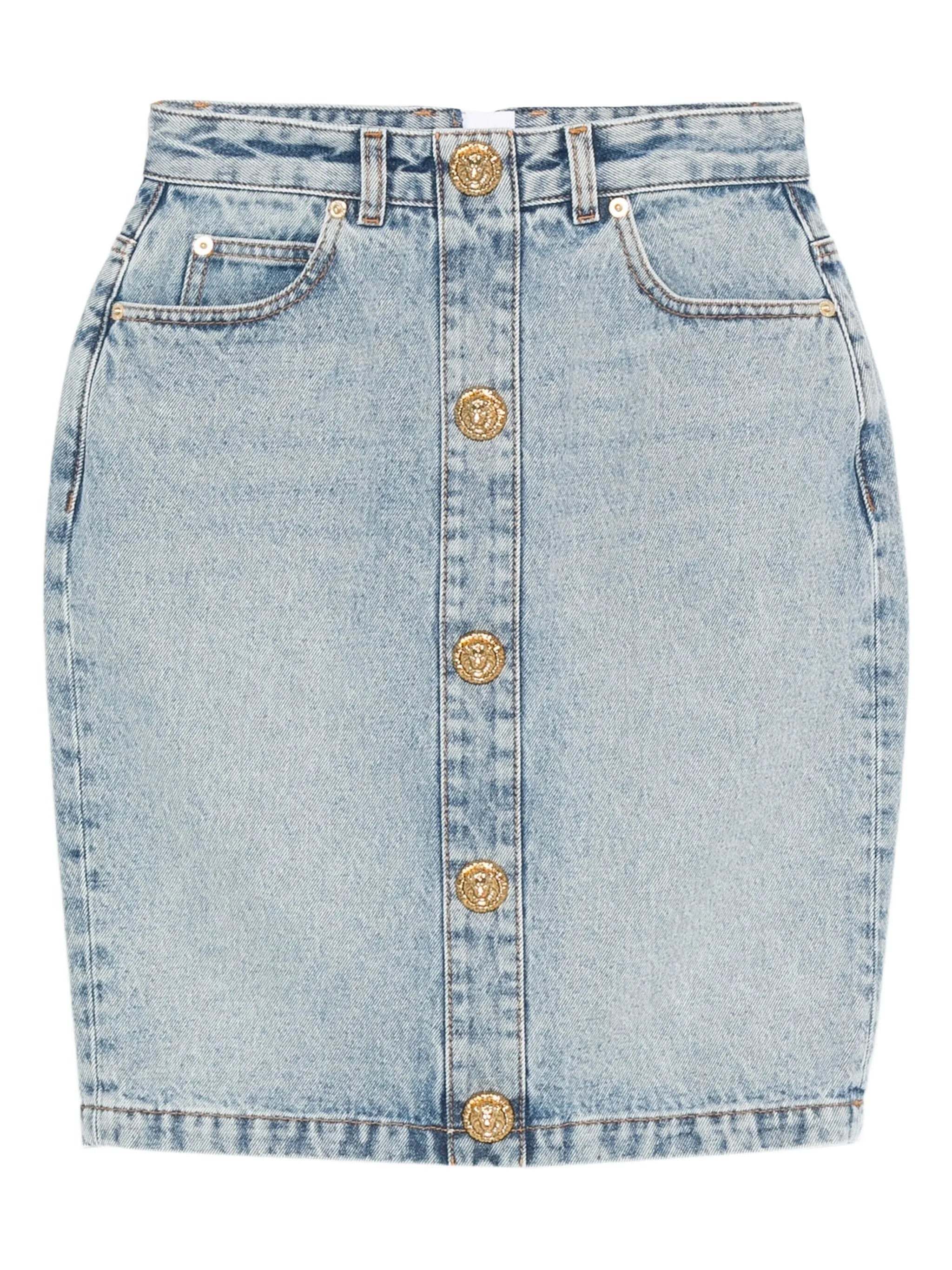 - blue - denim - rear zip fastening - high waist - front pockets - gold-tone buttons Materials & Product Care Fabric 100% Size & Fit - The model is 1.76 m wearing size 38.