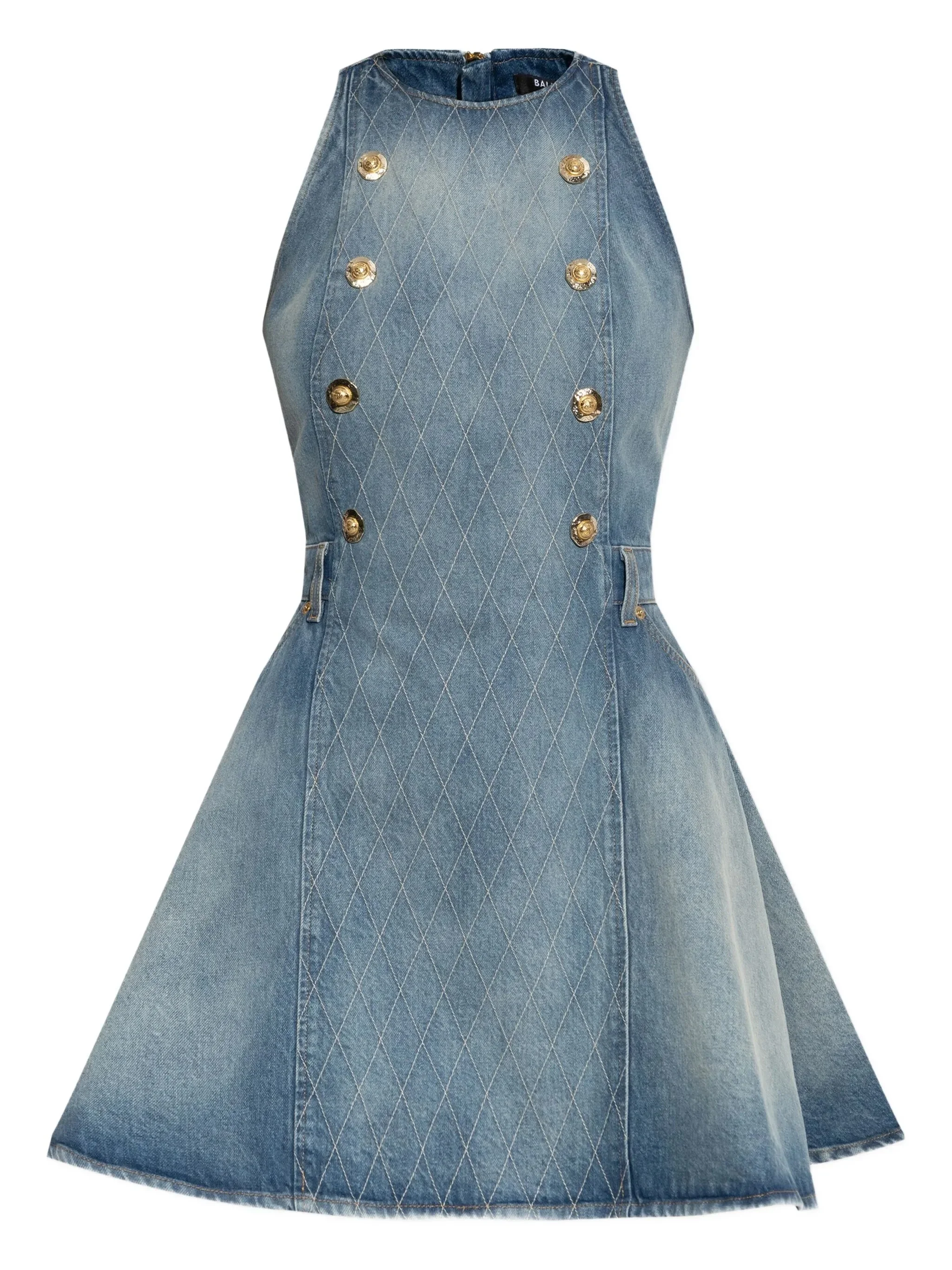 - blue - diamond quilted design - gold-tone buttons - sleeveless - flared skirt Materials & Product Care Cotton 100%