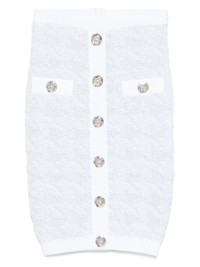 - light blue - front button fastening - high-waisted - tweed - knee-length Materials & Product Care Cotton 13%, Metallized Polyester 2%, Polyamide 66%, Polyester 3%, viscose 16% Size & Fit - Made from a midweight non-stretch fabric, this piece offers minimal elasticity when worn - This mini-length skirt is intended to be worn high on the waist - The model is 1.75 m wearing size 36.