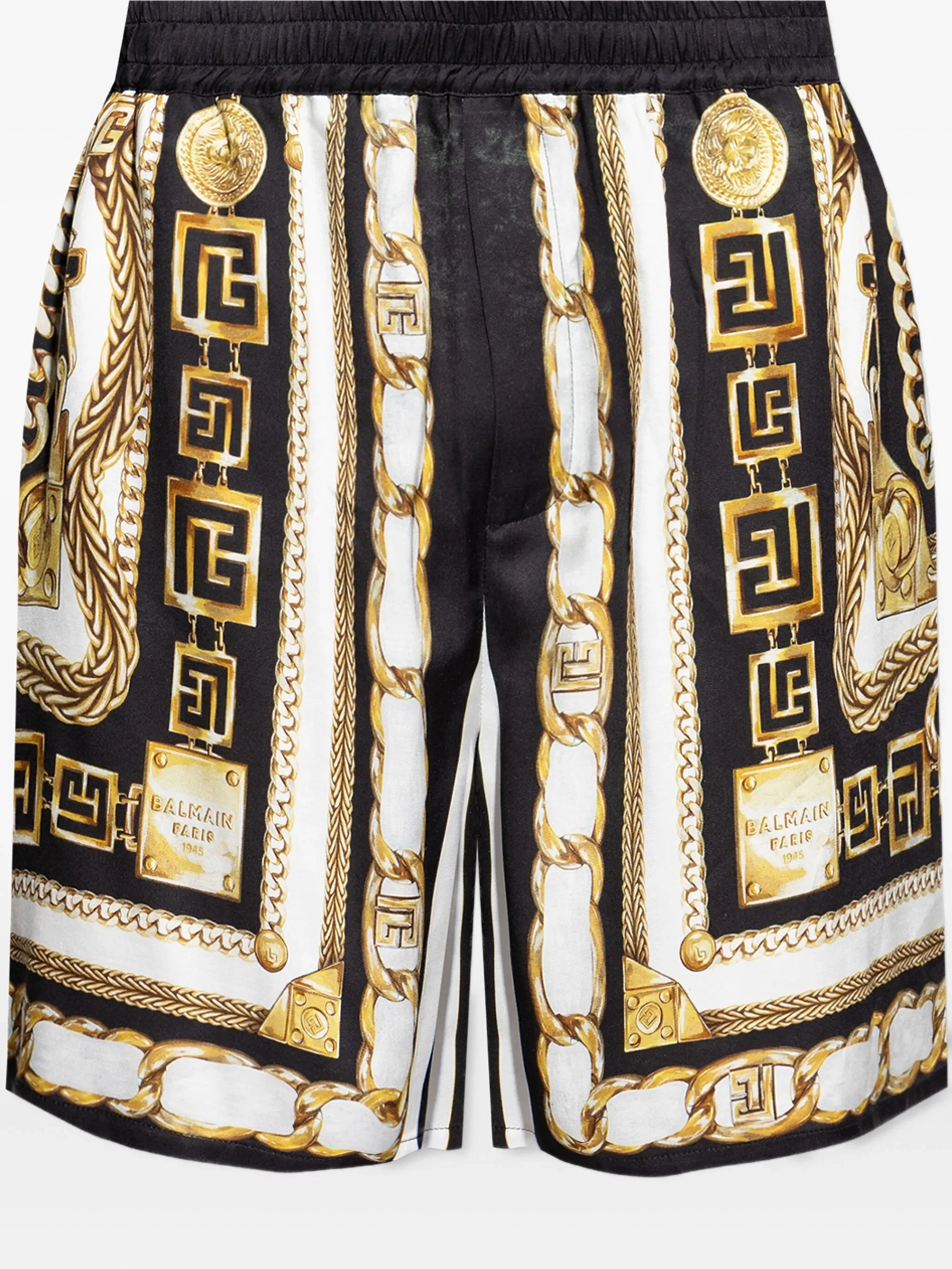 - black - gold-tone chain print - geometric pattern - elasticated waistband Materials & Product Care viscose 100%