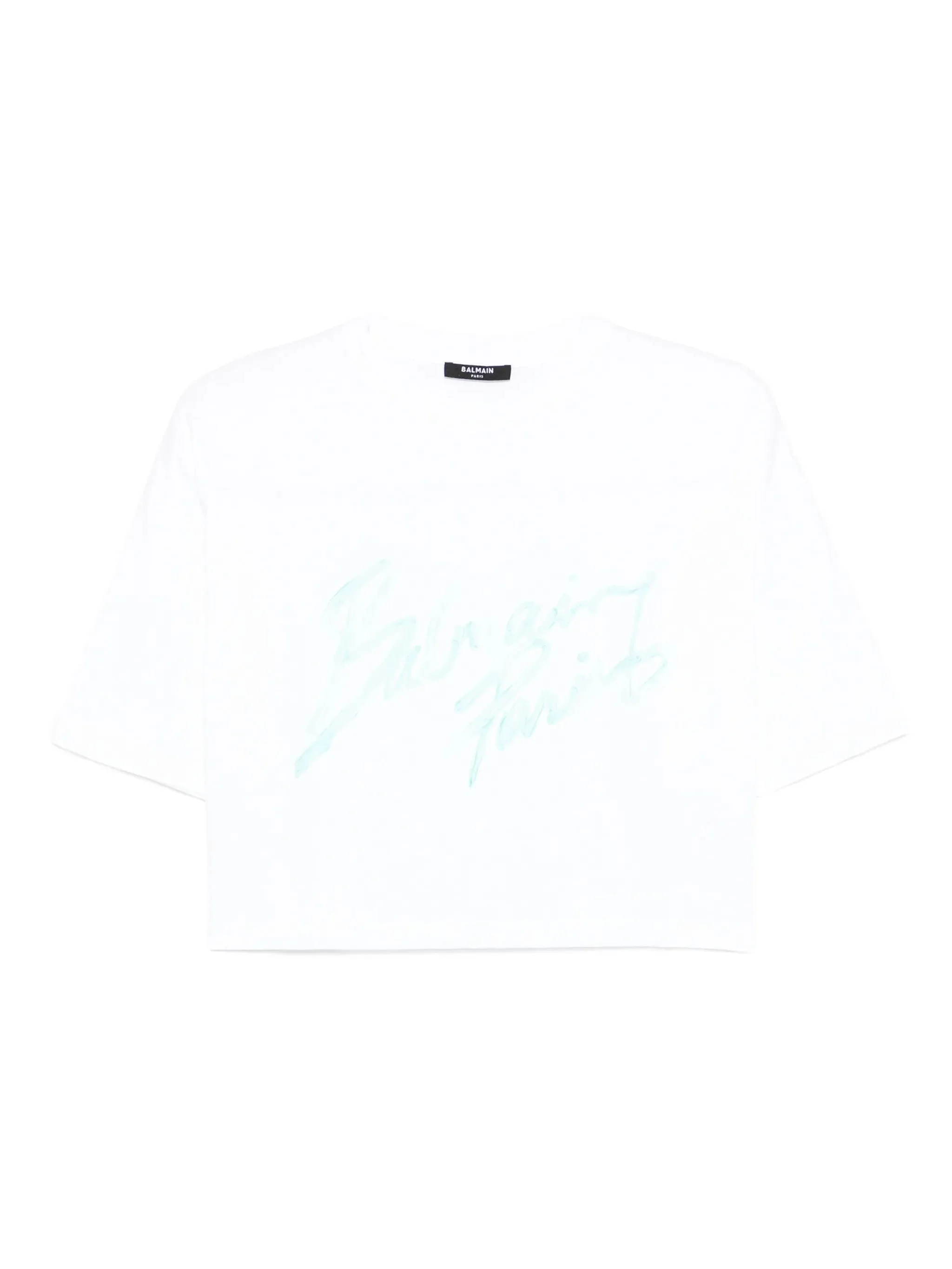 - white - logo print - cropped style - short sleeves - round neck Materials & Product Care Organic Cotton 100% Size & Fit - The model is 1.76 m wearing size S.