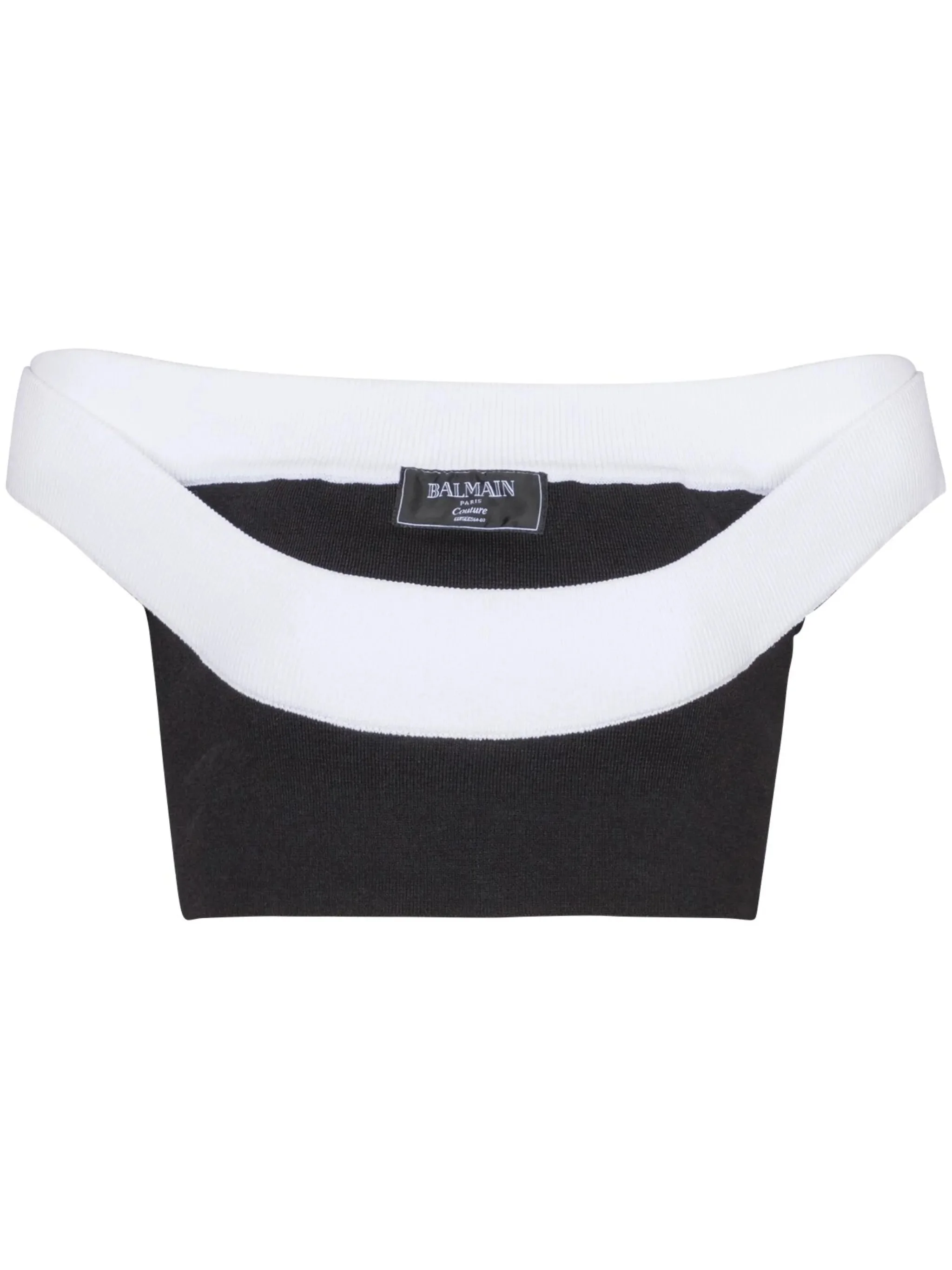 - black/white - ribbed knit - boat neck - off-shoulder - sleeveless - logo tag - straight hem - cropped Materials & Product Care Polyester 20%, viscose 80% Size & Fit - Cropped in length - Designed for a close fit throughout - Made with a midweight knit, this piece offers some stretch