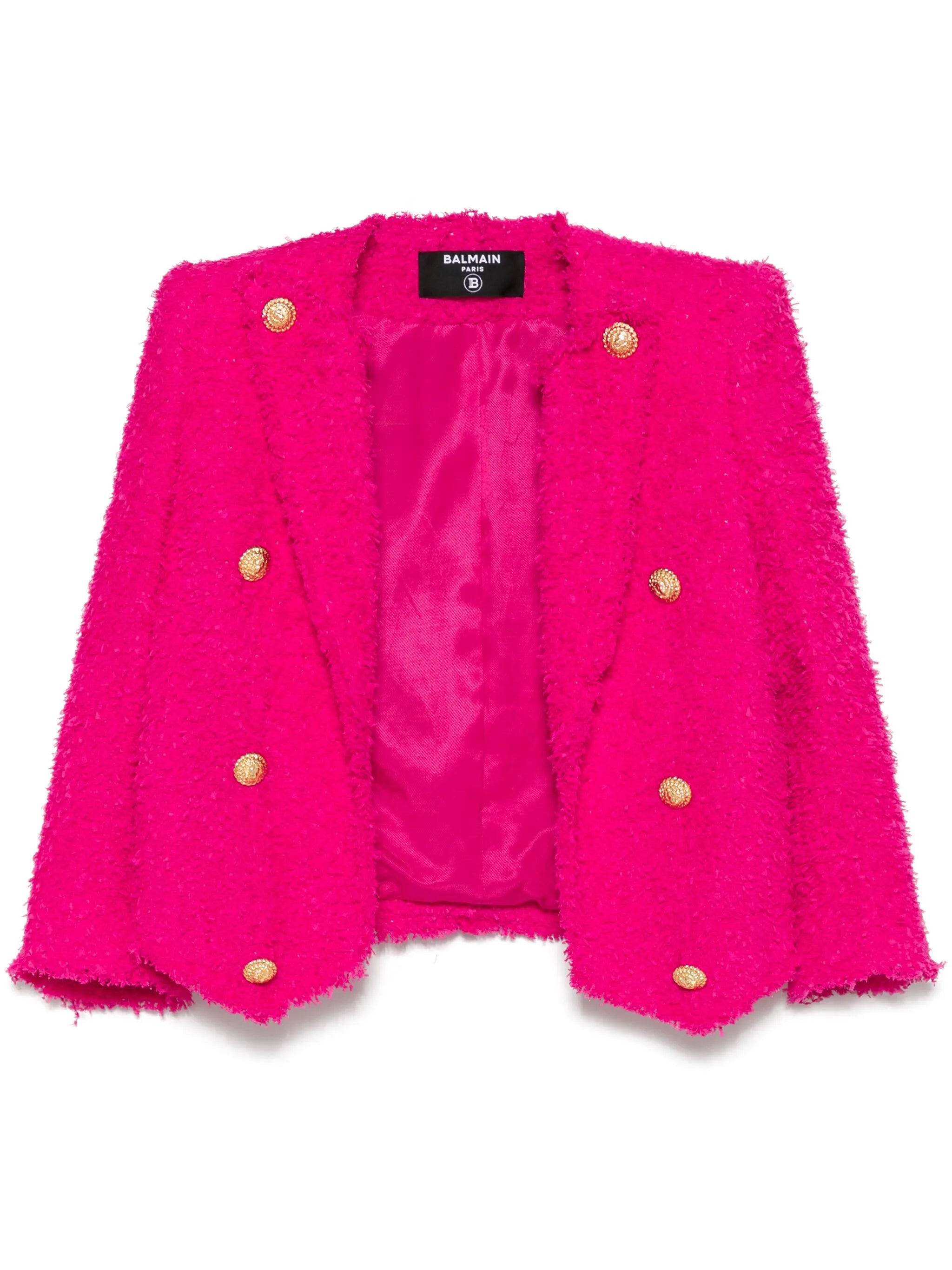 - pink - no fastening - buttoned cuffs - peak lapels - embossed gold-tone buttons Materials & Product Care Lining: Cotton 48%, viscose 52% Outer: Polyamide 100% Size & Fit - Designed for a slim fit that sits just away from the body offering a close yet comfortable fit - Made from a midweight non-stretch fabric - The internal shoulder pads offer a structured shape - The model is 1.77 m wearing size 36.