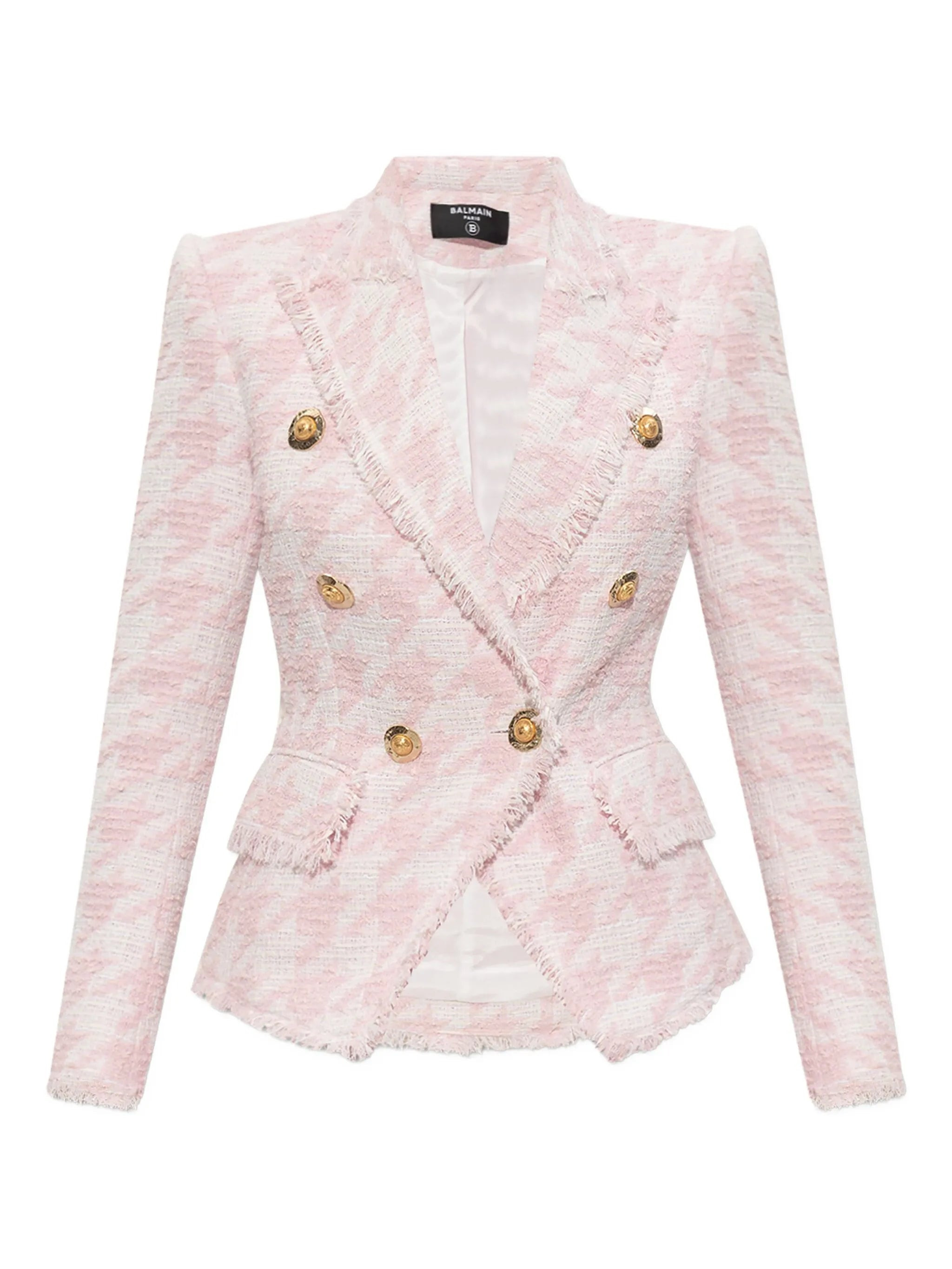 - light pink - houndstooth pattern - frayed edges - gold-tone buttons - double-breasted fastening Materials & Product Care Cotton 100%