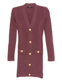 - dark violet - ribbed knit - V-neck - two front pockets - front button fastening Materials & Product Care Fabric 100% Size & Fit - The model is 1.73 m wearing size 38.
