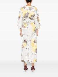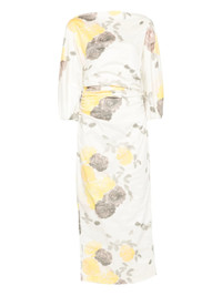 - white - floral print - ruched detail - three-quarter length sleeves - round neck - mid-length Materials & Product Care Fabric 100% Size & Fit - The model is 1.76 m wearing size 36.