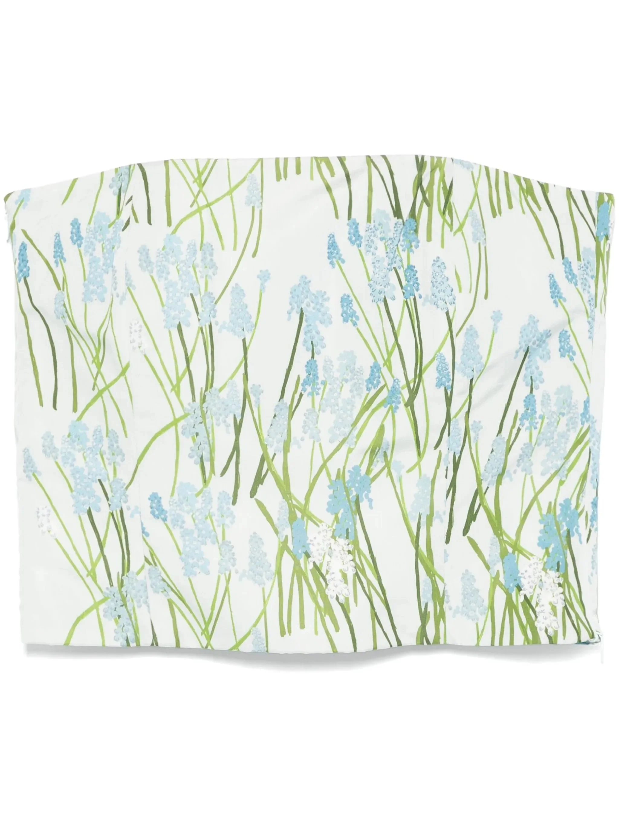 - mint green - all-over floral print - concealed side zip fastening - bandeau style - boned bodice - strapless - full lining - curved hem Materials & Product Care Polyester 100% Size & Fit - Designed for a close fit throughout - Made from a midweight non-stretch fabric - The model is 1.78 m wearing size 36.
