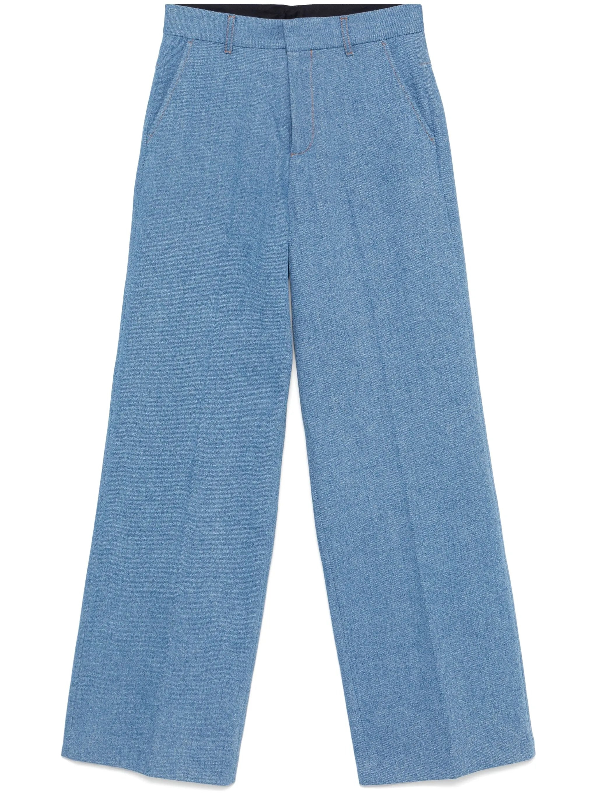- cerulean blue - hook and zip fly fastening - two side slash pockets - belted waist tabs - two rear welt pockets Materials & Product Care Lining: Cotton 100% Outer: Cotton 100% Size & Fit - Designed with a wide leg cut, these jeans allow for a close fit at the waist and offer a loose and roomy fit over the leg - Sturdy and hard-wearing, this denim piece offers no stretch - The model is 1.80 m wearing size S.