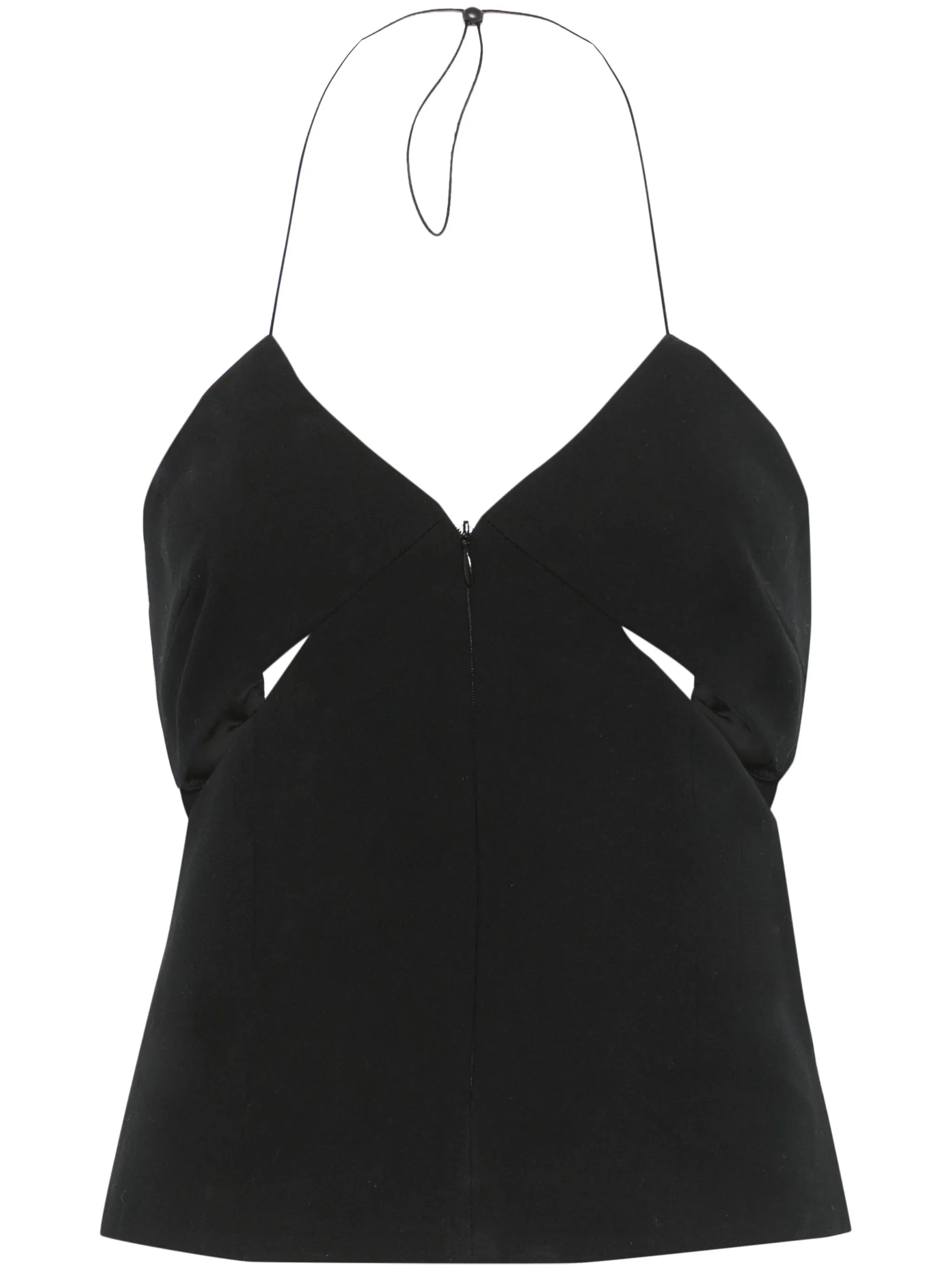 - black - concealed front zip fastening - rear clasp fastening - halterneck tie fastening - sleeveless Materials & Product Care Elastane 2%, Wool 98% Size & Fit - Designed for a close fit throughout - Made from a midweight stretch fabric, this piece offers elasticity and flexibility when worn - The adjustable shoulder straps allow for a preferred fit when worn - The model is 1.78 m wearing size S.