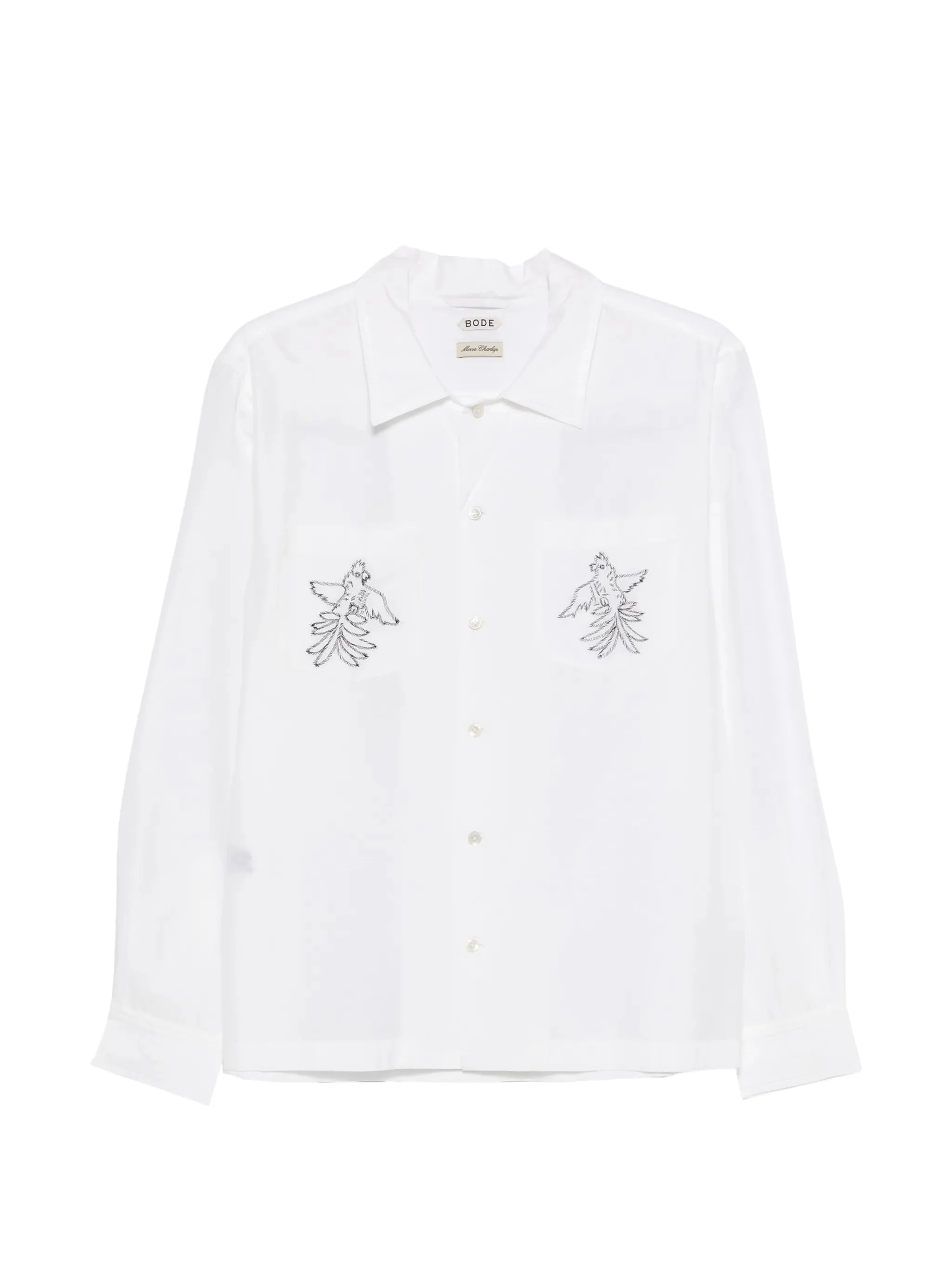 - white - chest patch pockets - cockatoo embroidery - button fastening - long sleeves - buttoned cuffs Materials & Product Care Cotton 83%, Silk 17% Size & Fit - The model is 1.87 m wearing size M.