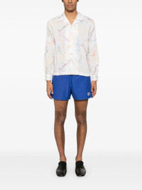 - blue - elasticated waistband with internal drawstring - two side slit pockets - embroidered logo to the side Materials & Product Care Cotton 100% Size & Fit - Designed for relaxed fit, offering a comfortable loose fit over the leg - Made from a lightweight non-stretch fabric - The model is 1.89 m wearing size M.