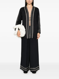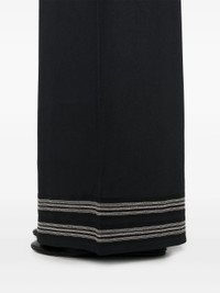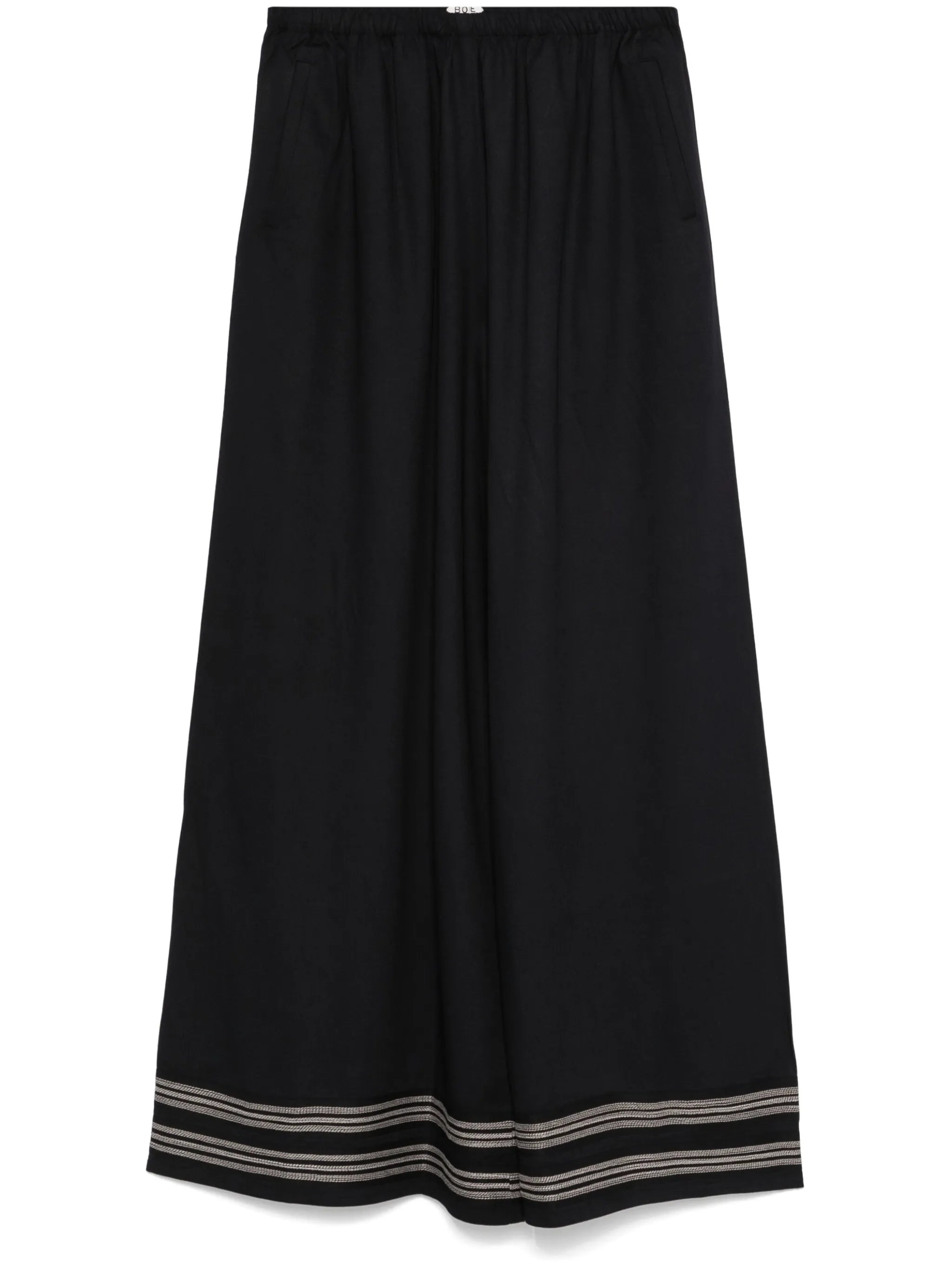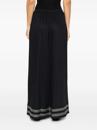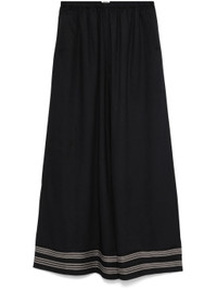 - midnight blue/cream white - twill weave - elasticated waistband - two side welt pockets - contrast decorative stitching - wide leg Materials & Product Care viscose 100% Size & Fit - Designed with a wide-leg cut, these trousers allow for a close fit at the waist and offer a loose and roomy fit over the leg - Made from a midweight non-stretch fabric - The elasticated waist allows for a comfortable fit - The model is 1.80 m wearing size S.