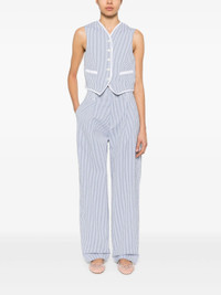 - navy blue - front button and zip fastening - two side inset pockets - two rear button-fastening pockets - belt loops Materials & Product Care Lining: viscose 100% Outer: Cotton 97%, Elastane 3% Size & Fit - Designed for a tapered fit, these trousers allow for a close fit at the waist and a loose unrestricted fit over the leg with a closer fit towards the ankle - Made from a midweight stretch fabric, this piece offers elasticity and flexibility when worn - The model is 1.76 m wearing size 27.