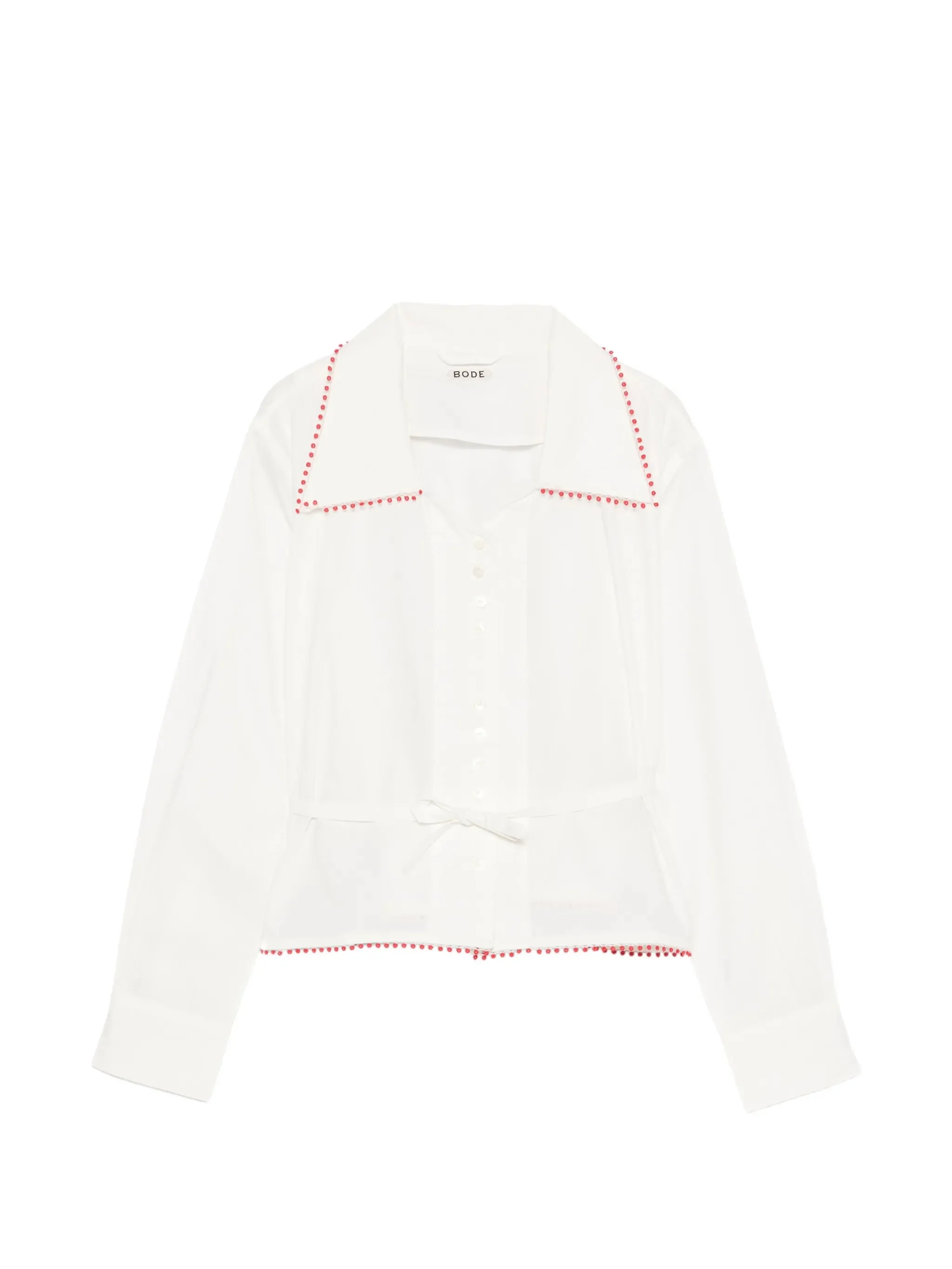 - white - trim - tie waist - button fastening - long sleeves - collared Materials & Product Care Cotton 100% Size & Fit - The model is 1.80 m wearing size S.