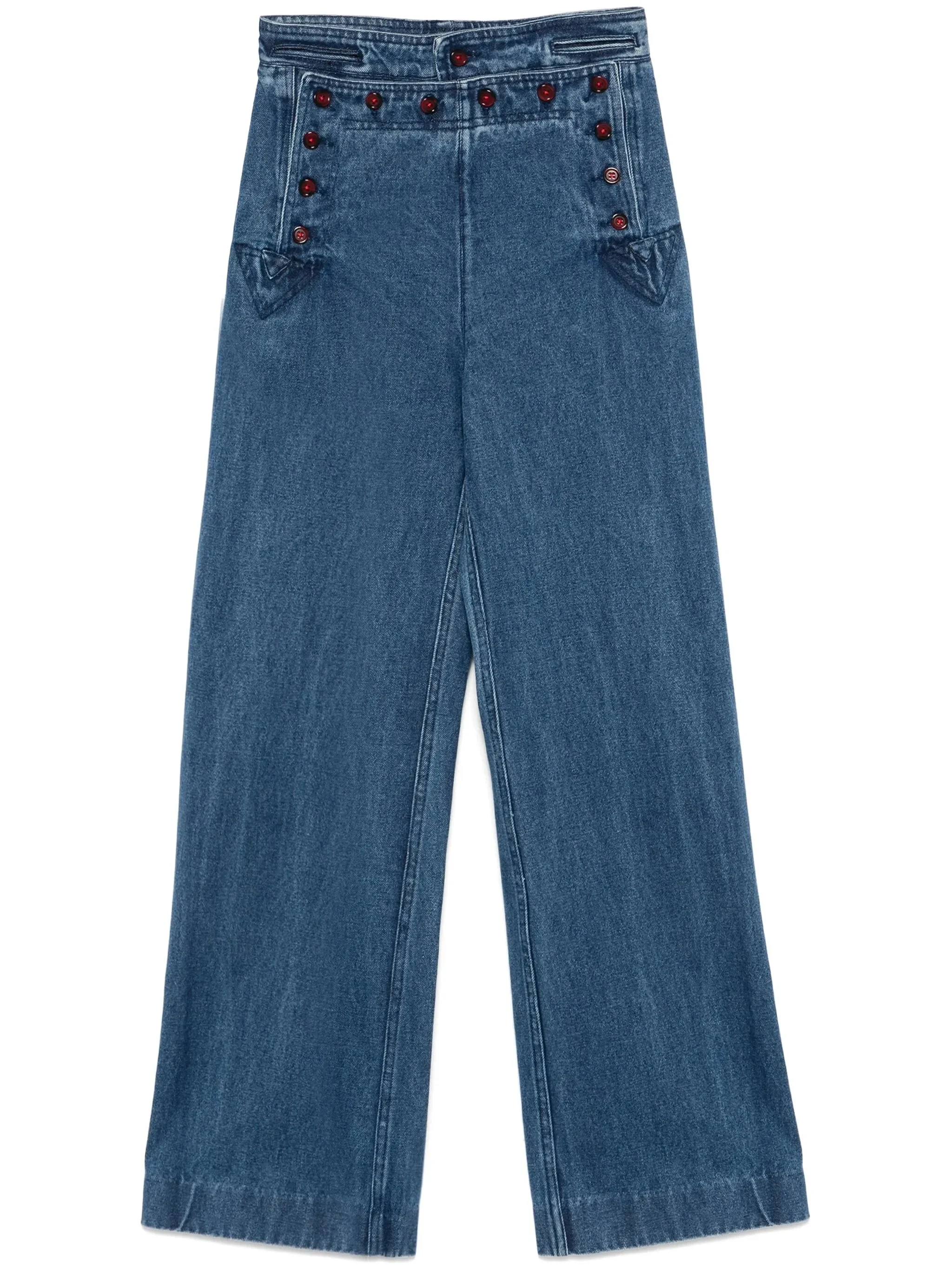 - indigo blue - front button fastening - two front jetted pockets - rear slit pocket - straight leg Materials & Product Care Cotton 100% Size & Fit - Designed for a straight-leg fit, these jeans allow for a close fit at the waist and an unrestricted and comfortable fit over the leg - Sturdy and hard-wearing, this denim piece offers no stretch - The model is 1.75 m wearing size 27.