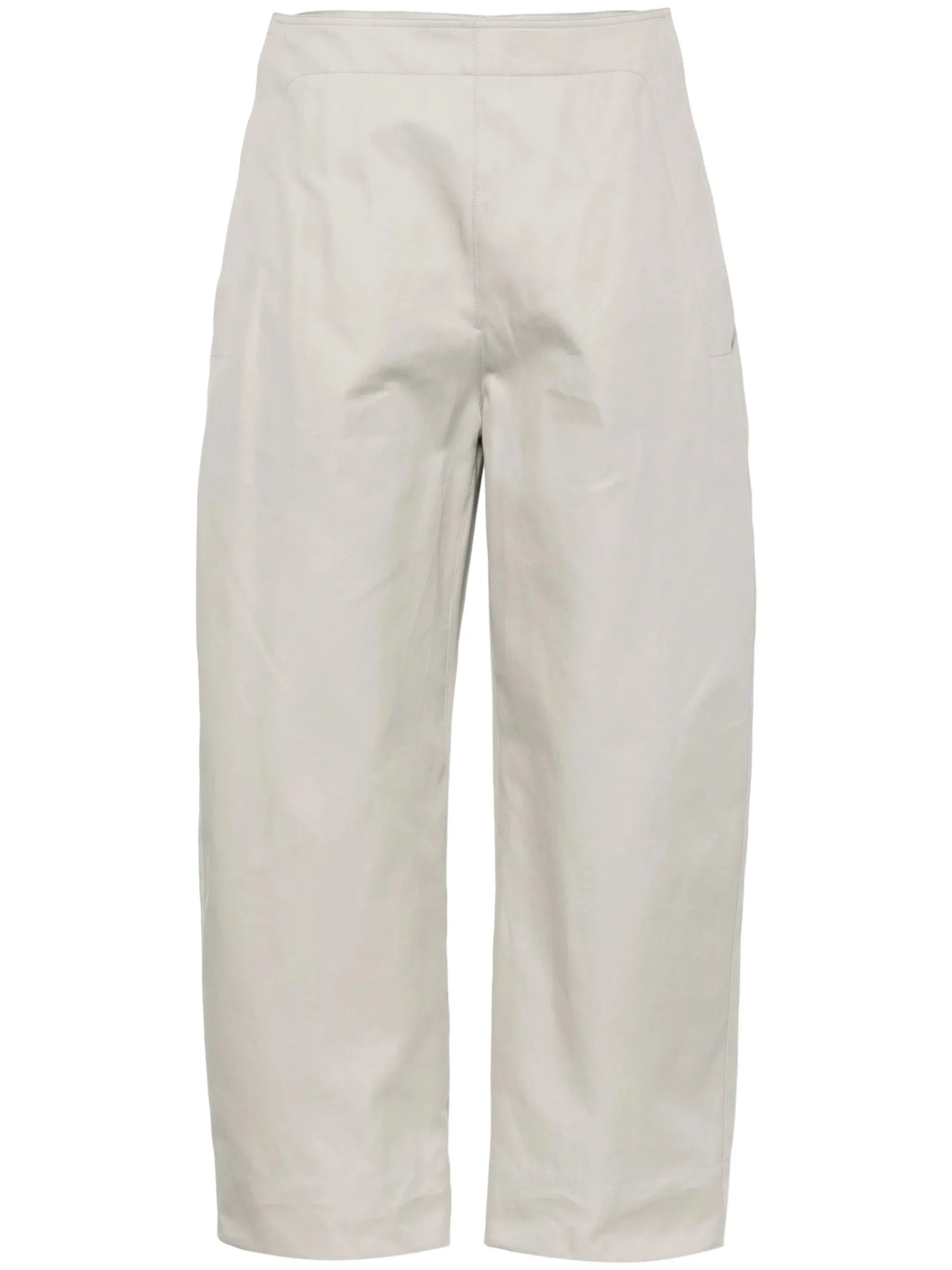 - grey - cotton - twill weave - detachable front panel - mid-rise - concealed front fastening - two side slit pockets - two rear flap pockets - wide leg Materials & Product Care Lining: Cotton 100% Outer: Cotton 100% Size & Fit - Designed for a straight-leg fit, these trousers allow for a close fit at the waist and an unrestricted, comfortable fit over the leg - Made from a midweight non-stretch fabric - This piece fits true to size – take your usual size - The model is 1.78 m wearing size 40.
