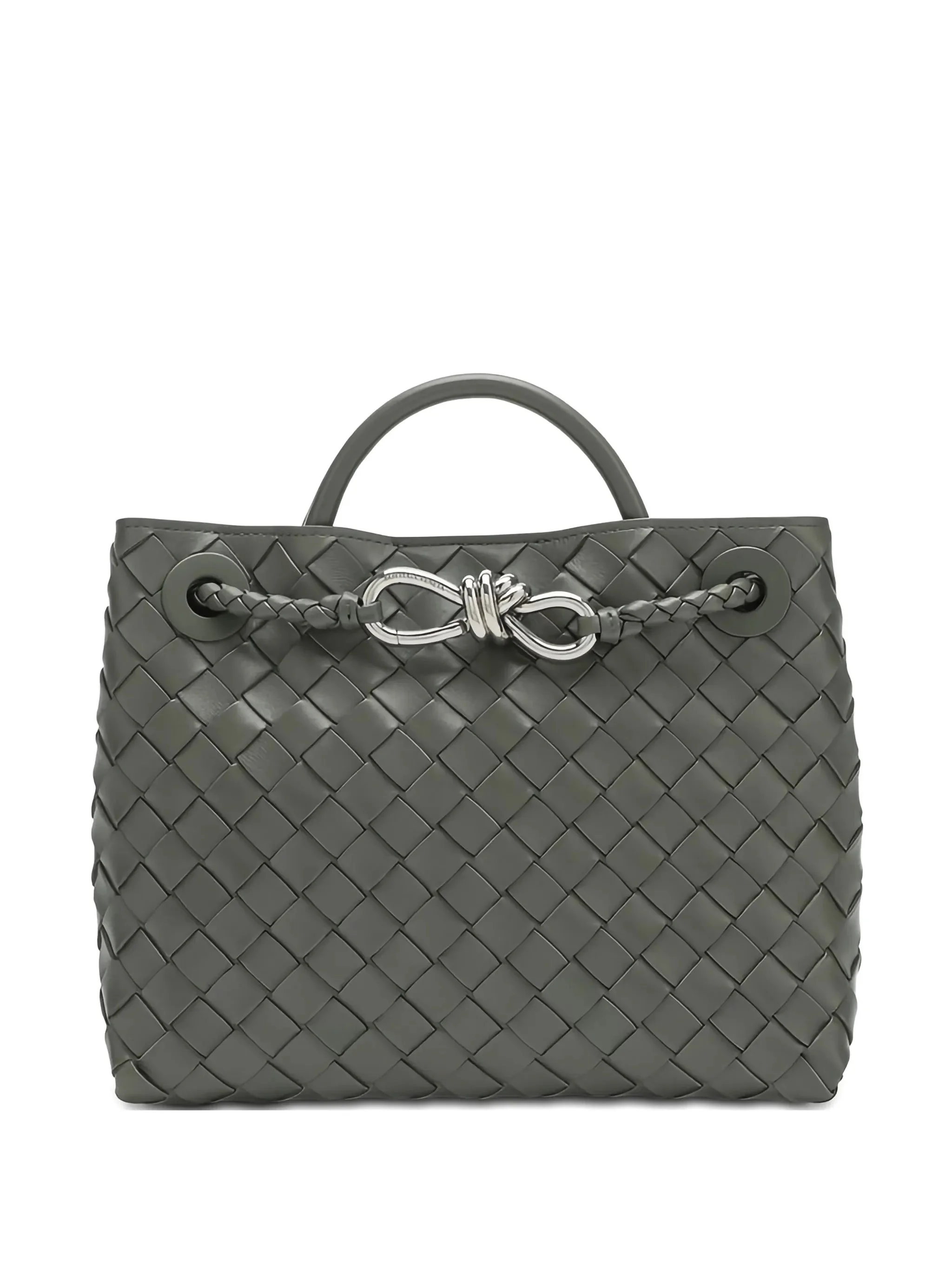 - pickle grey - woven design - top handle - silver-tone hardware - internal zip pocket Materials & Product Care Lining: Lambskin 100% Outer: Brass 100%, Lamb Skin 100%
