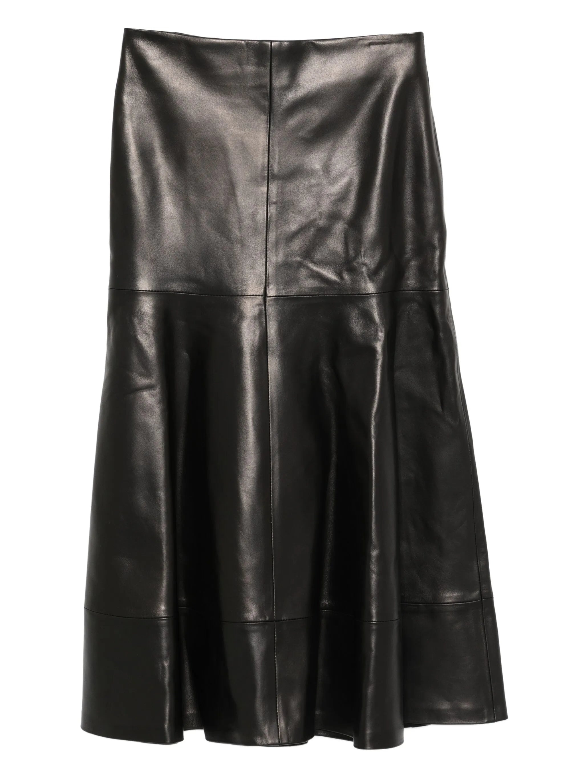 - black - flared hem - panelled construction - mid-rise - straight yoke - concealed zip fastening Materials & Product Care Lamb Skin 100% Size & Fit - The model is 1.76 m wearing size 2.