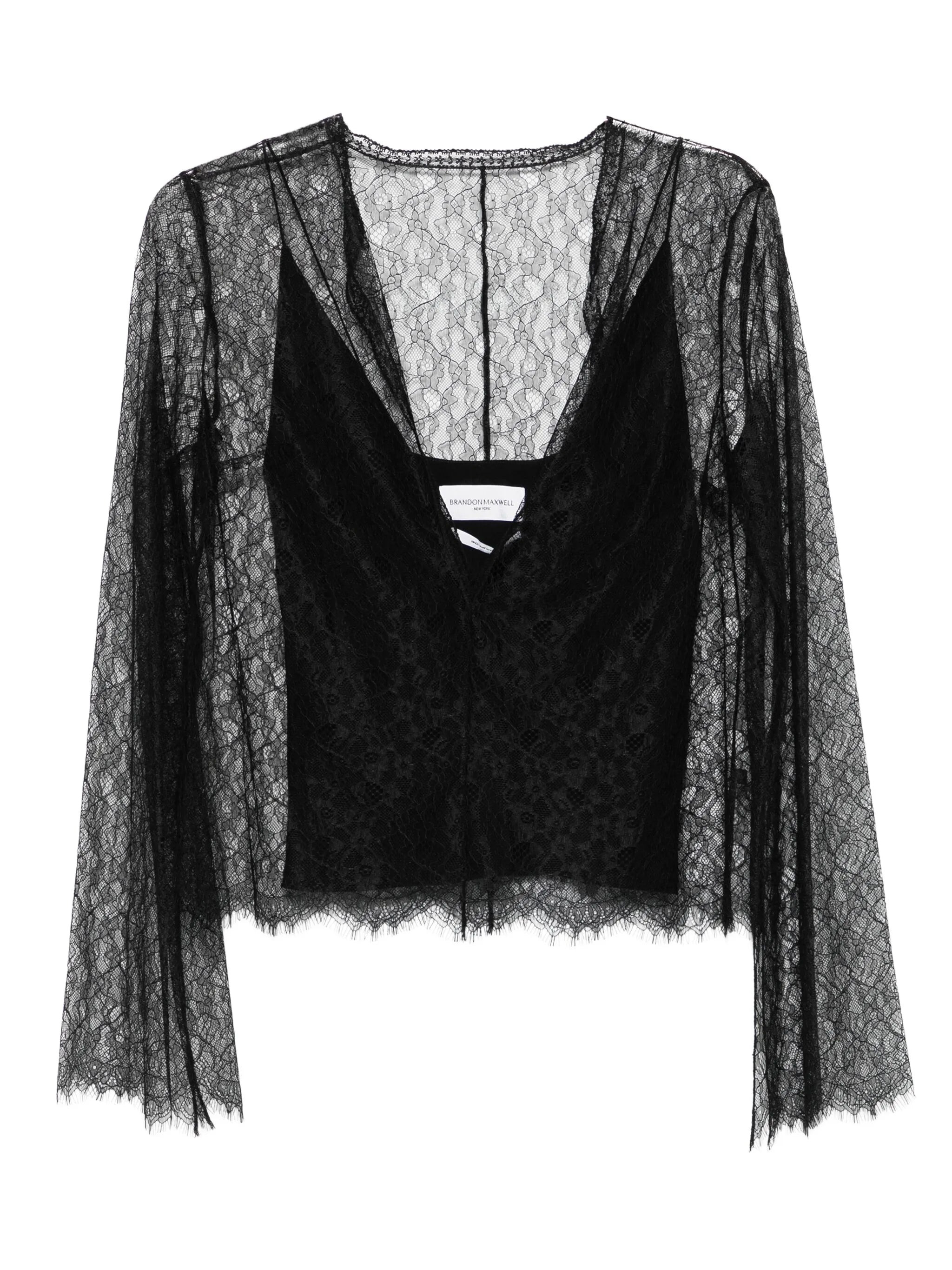 - black - lace construction - V-neck - bell sleeves - sheer construction Materials & Product Care Lining: Silk 100% Outer: Nylon 100% Size & Fit - The model is 1.77 m wearing size 2.