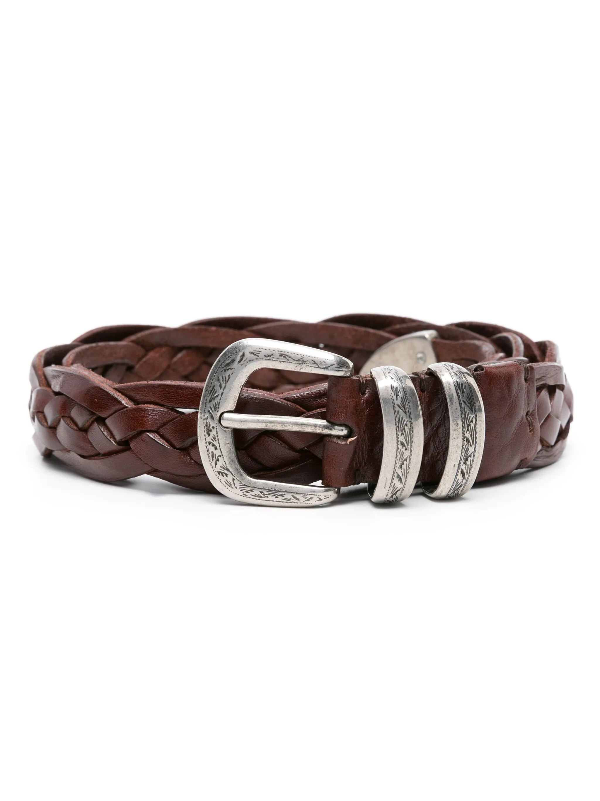 engraved-buckle braided leather belt
