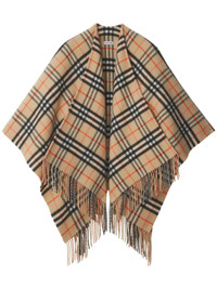 - sand beige - wool-cashmere blend - felted - Vintage Check pattern - cape design - fringed edge - wraparound style - When buying this unisex item, keep in mind that it is graded in standard men's sizing. Materials & Product Care Cashmere 10%, Wool 90%