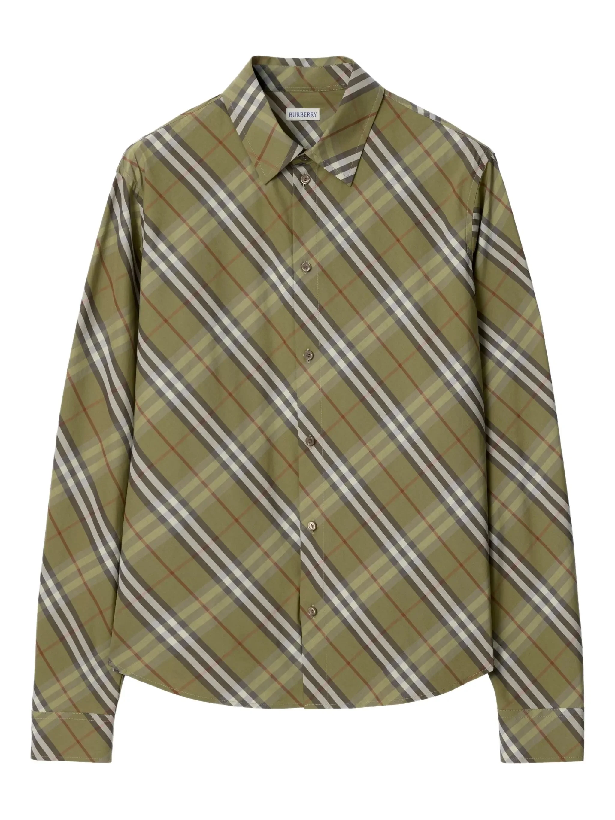 - green - check pattern - button closure - point collar - long sleeves - button cuffs - curved hem Materials & Product Care Cotton 100%, Mother of Pearl 100%