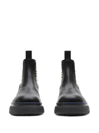 - black - calf leather - smooth grain - pull-tab at the heel - elasticated side panels - check pattern - pull-tab at the tongue - almond toe - branded insole - ridged rubber sole Materials & Product Care Lining: Calf Leather 85%, Elastane 3%, Goat Suede 5%, Polyester 7% Outer: Calf Leather 90%, Elastane 3%, Polyester 7% Sole: Rubber 100%