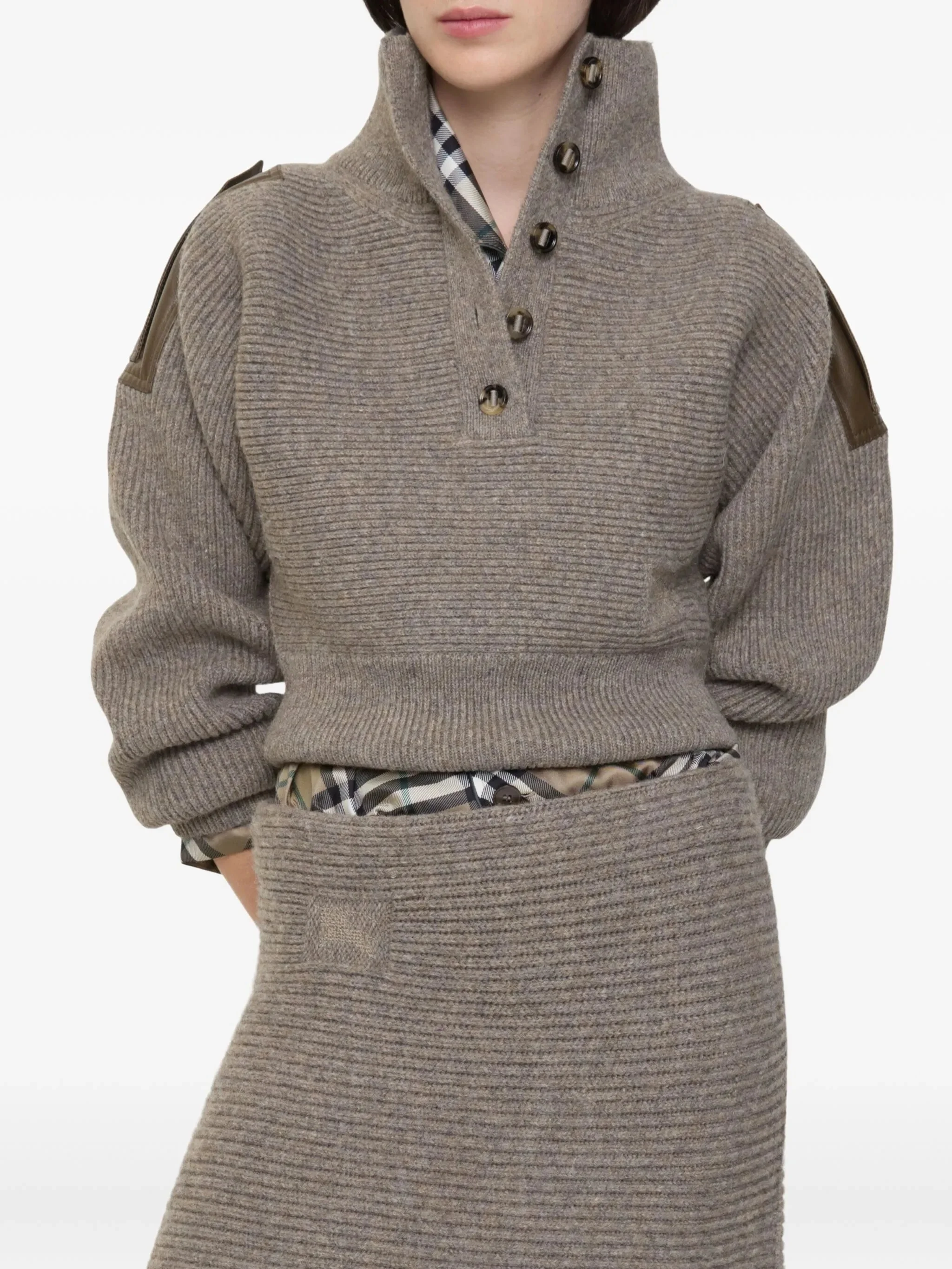 - beige - ribbed knit - epaulettes detail - button placket Materials & Product Care Elastane 1%, Polyamide 2%, Wool 97%