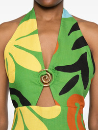 - bright green - concealed rear zip fastening - halterneck tie fastening - V-neck - all-over graphic print Materials & Product Care Lining: Cotton 100% Outer: Linen/Flax 100% Size & Fit - The model is 1.80 m wearing size S.