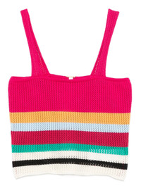 - fuchsia pink - square neck - sleeveless - horizontal stripe pattern Materials & Product Care Acrylic 7%, Alpaca Wool 7%, Cotton 63%, viscose 23% Size & Fit - The model is 1.80 m wearing size S.