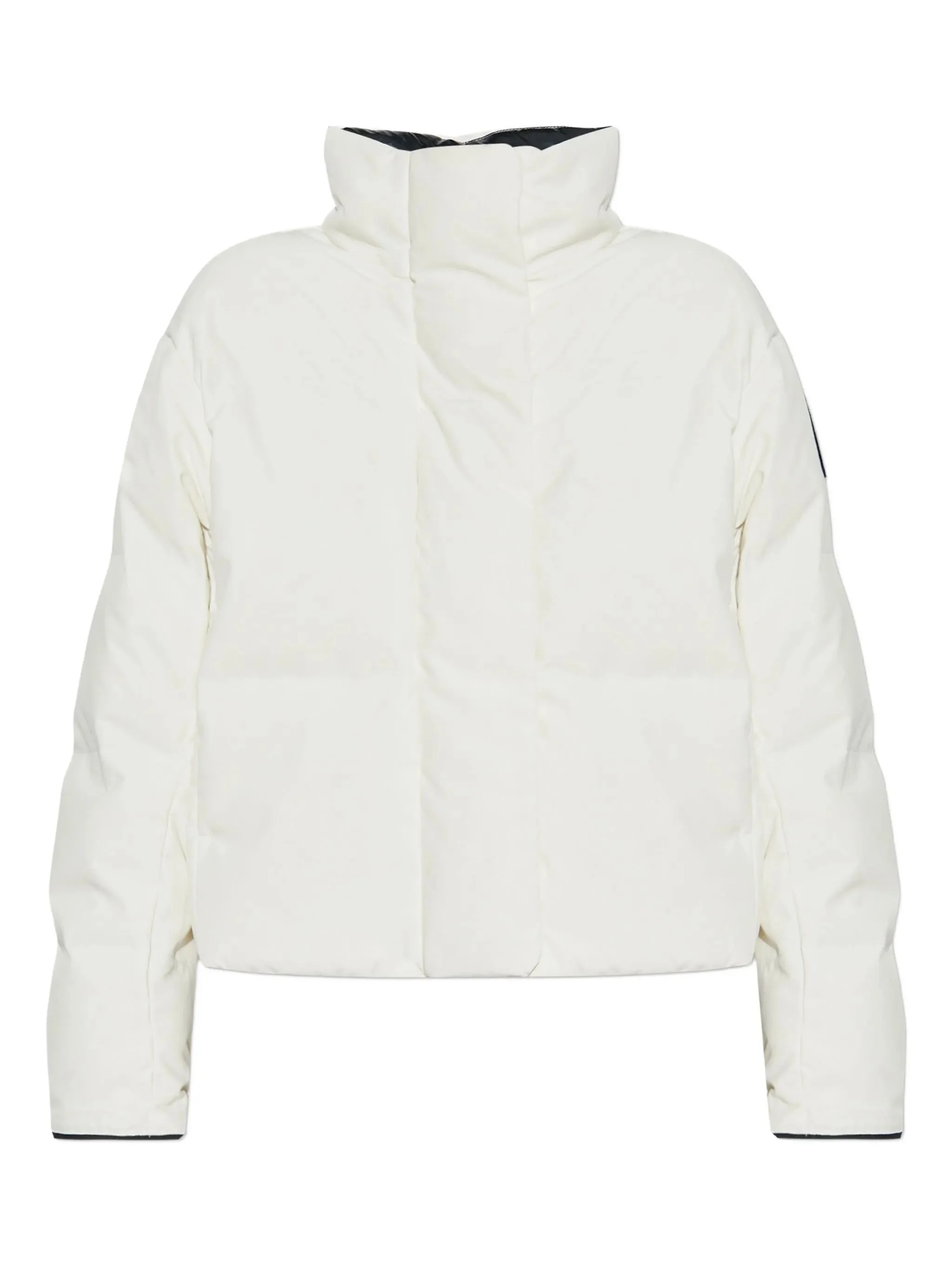 - off-white - quilted design - logo patch - snap button fastening Materials & Product Care Organic Cotton 15%, Recycled Polyester 85% Size & Fit - Designed for a relaxed fit, this piece allows for comfort and movement when worn - Made from a padded non-stretch fabric, giving it no natural elasticity - The internal drawstring at the hem allows for fitted preferences